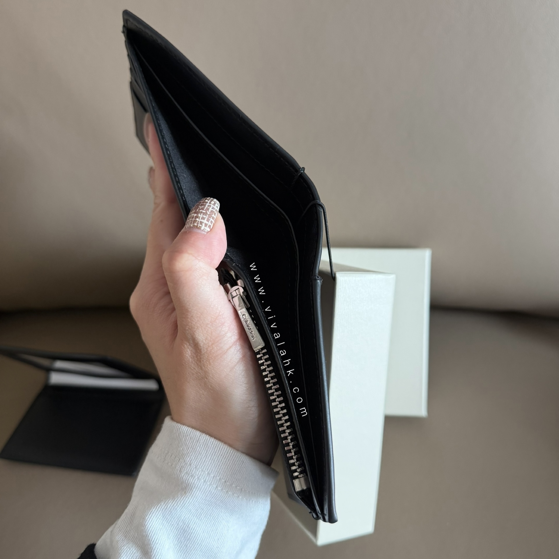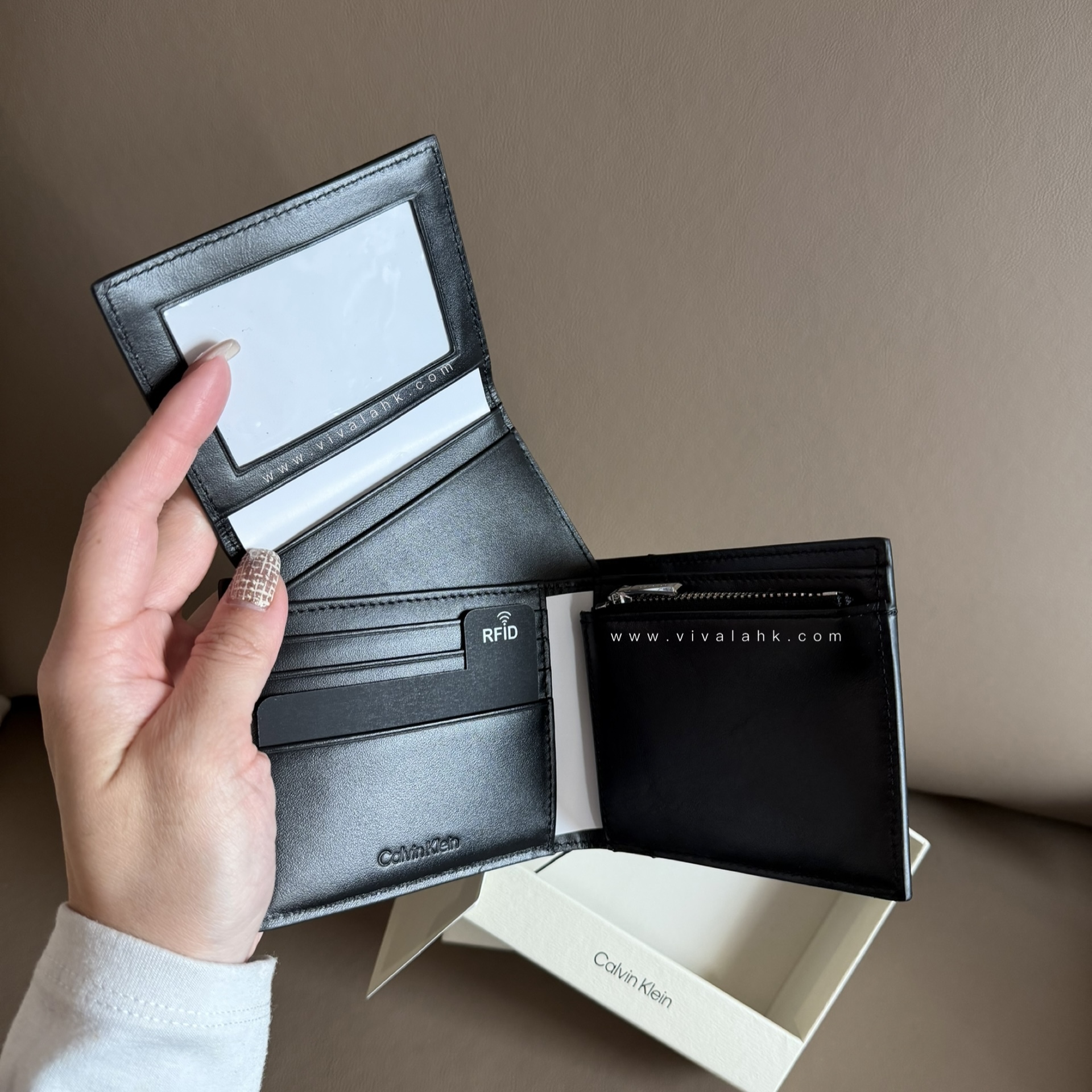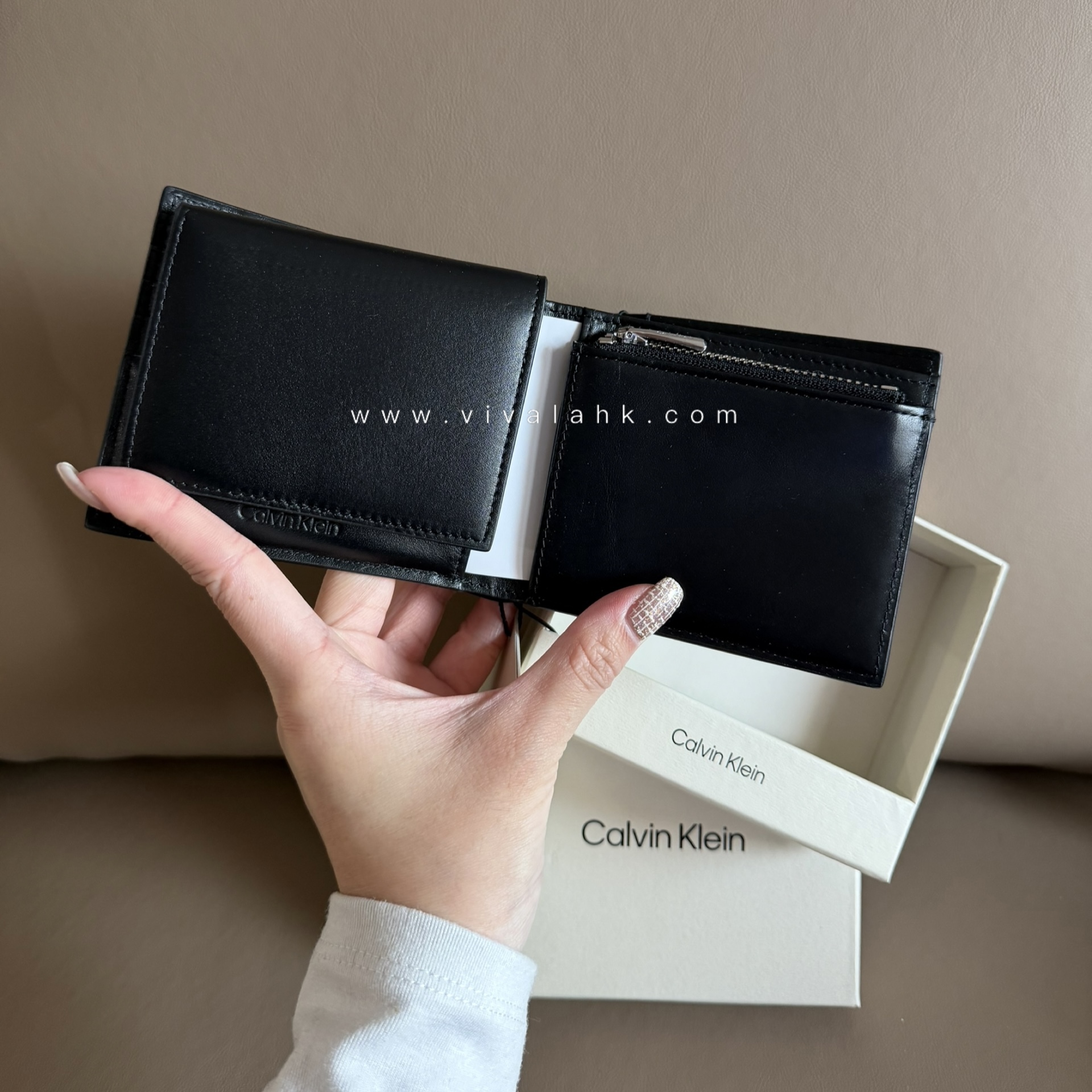 Calvin Klein 呢款 Raised Logo Bifold Wallet(4D1164G)走極簡低調路線,純黑光滑皮革配上細緻壓印 Logo,乾淨俐落,無多餘花巧,男士用超有質感 🖤