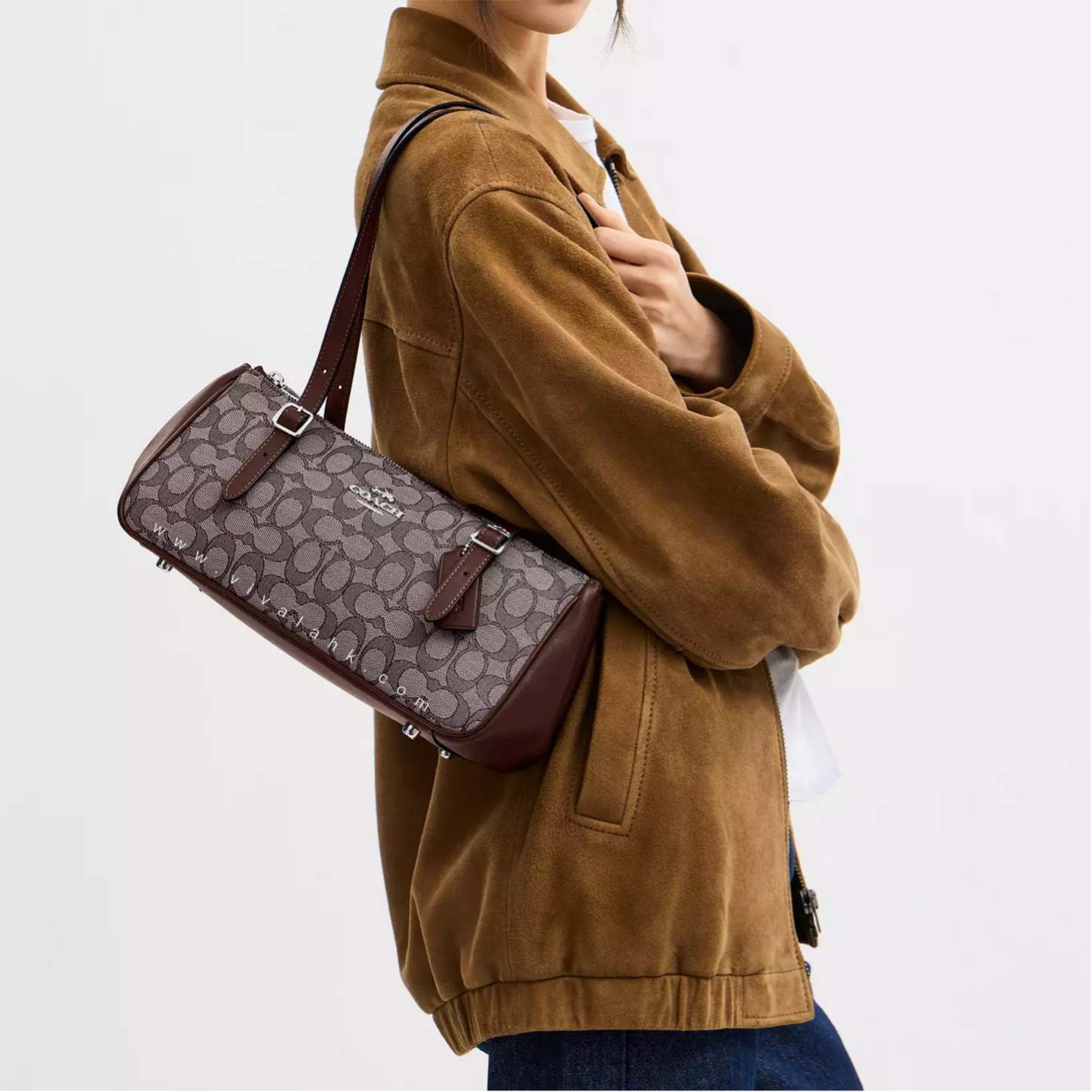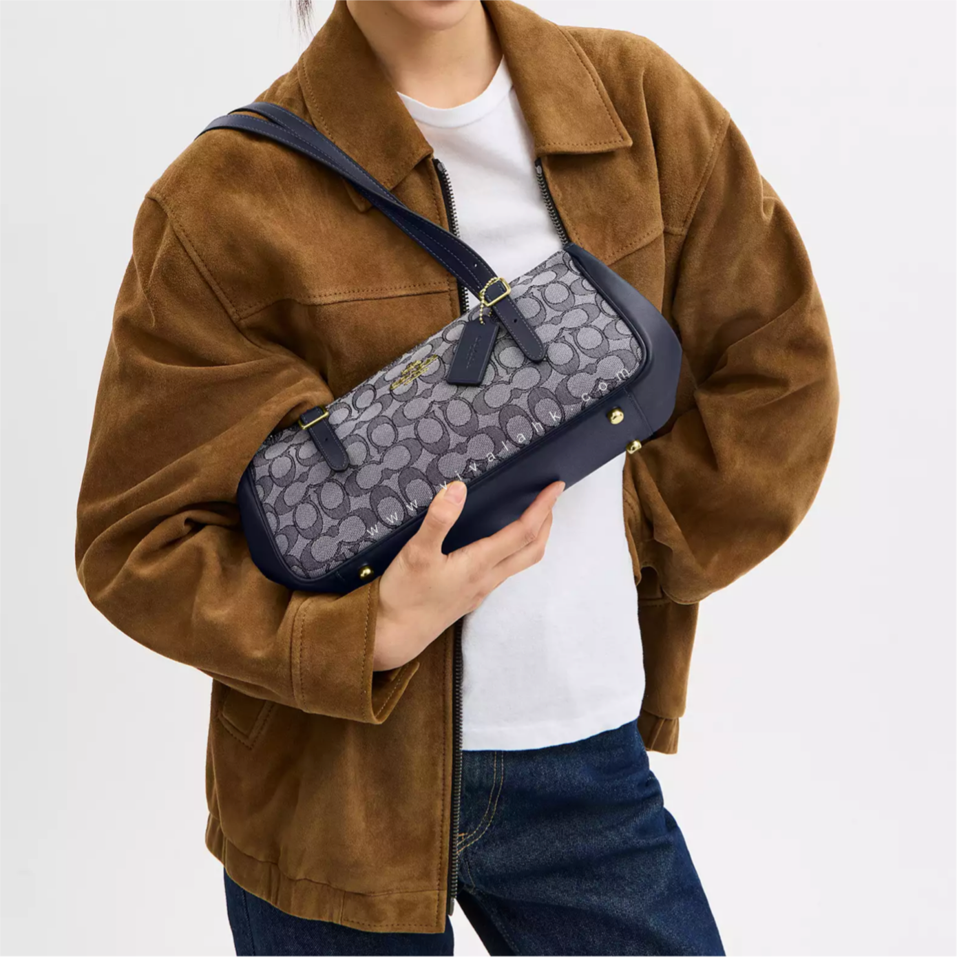 呢款 Coach Asher 肩背袋 用咗經典 Signature Jacquard 拼皮革設計,結合復古氣息同實用容量,係日常返工、出街必備嘅百搭袋款。簡約修長嘅袋身設計,配合雙肩帶,慳位又夠型,無論係Casual風定Smart Casual都啱用。