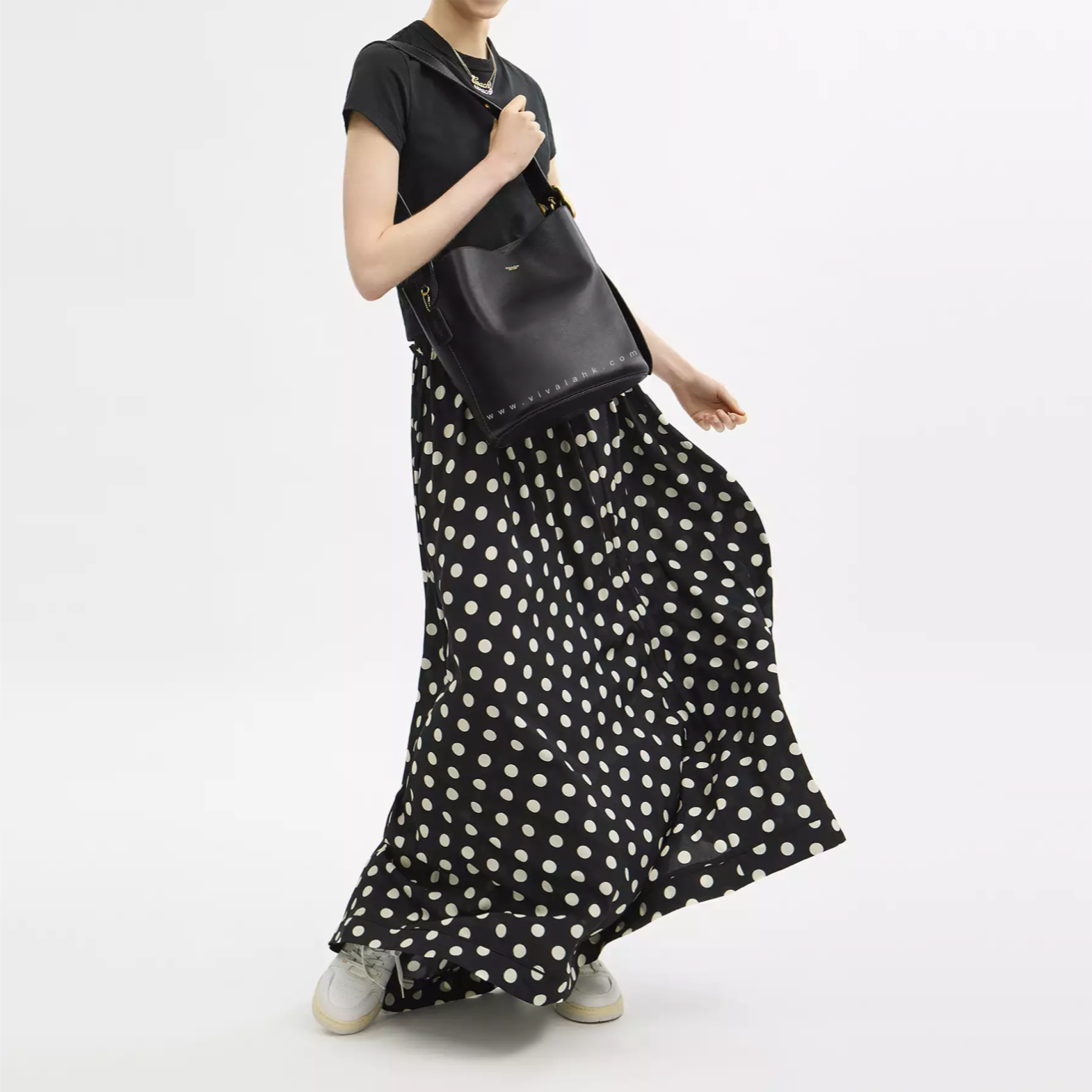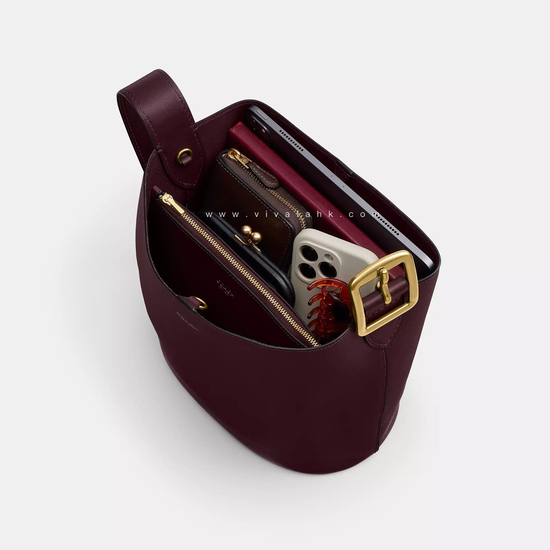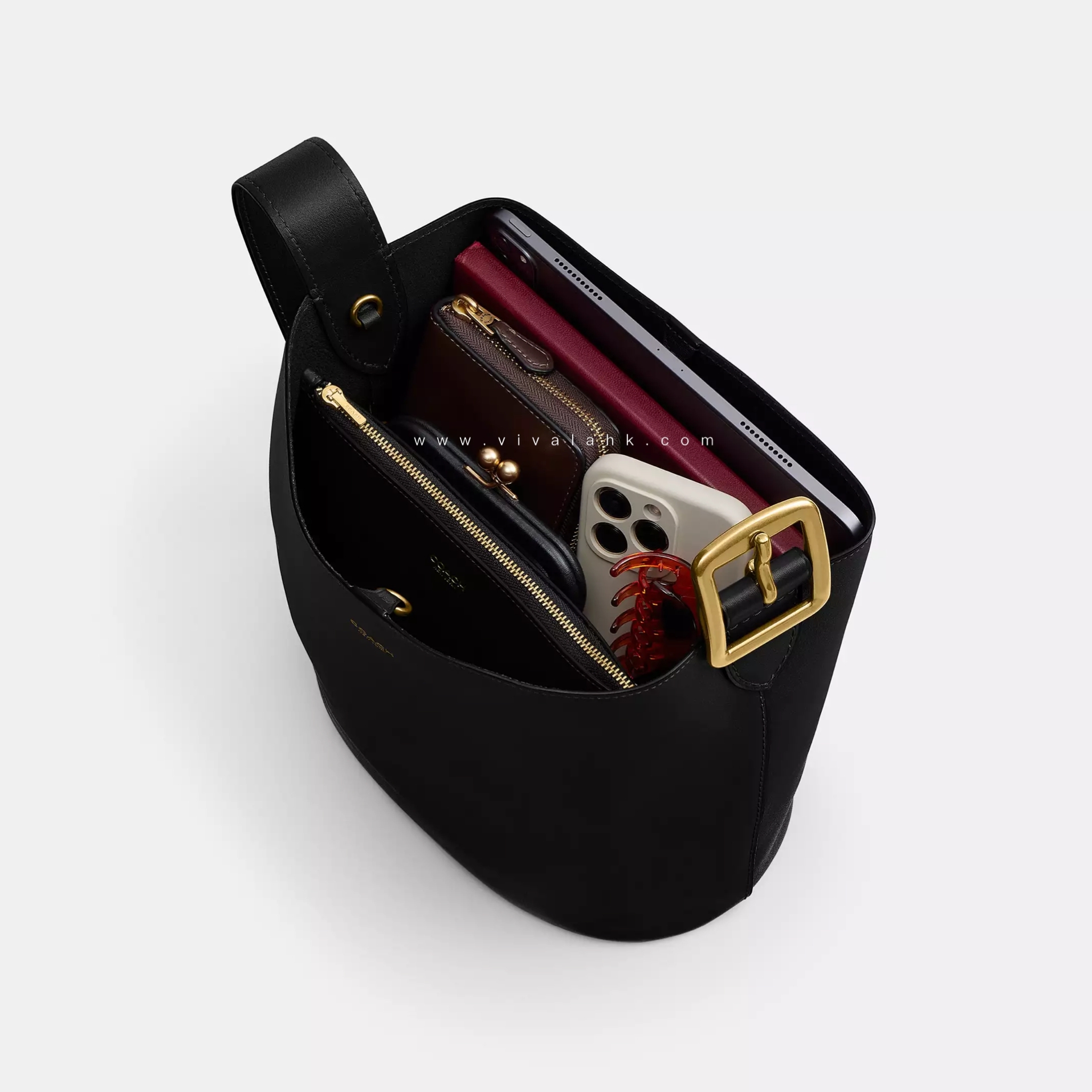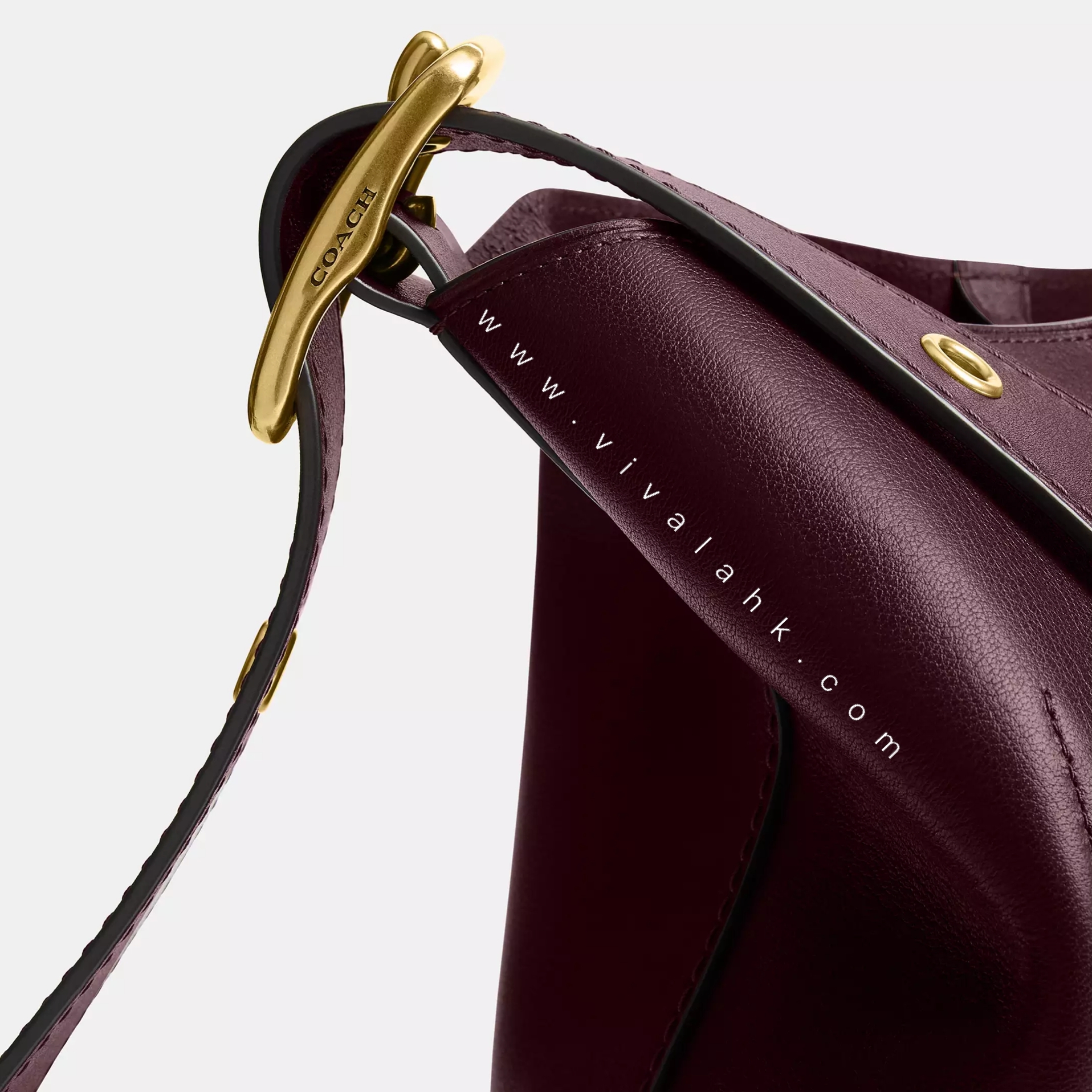 成個袋用上 Coach 招牌 Natural Grain Leather,手感超靚又夠挺,望落即刻有高級質感✨。袋型係自然垂墜嘅水桶形,低調又時尚,返工、上堂、約會都啱晒!