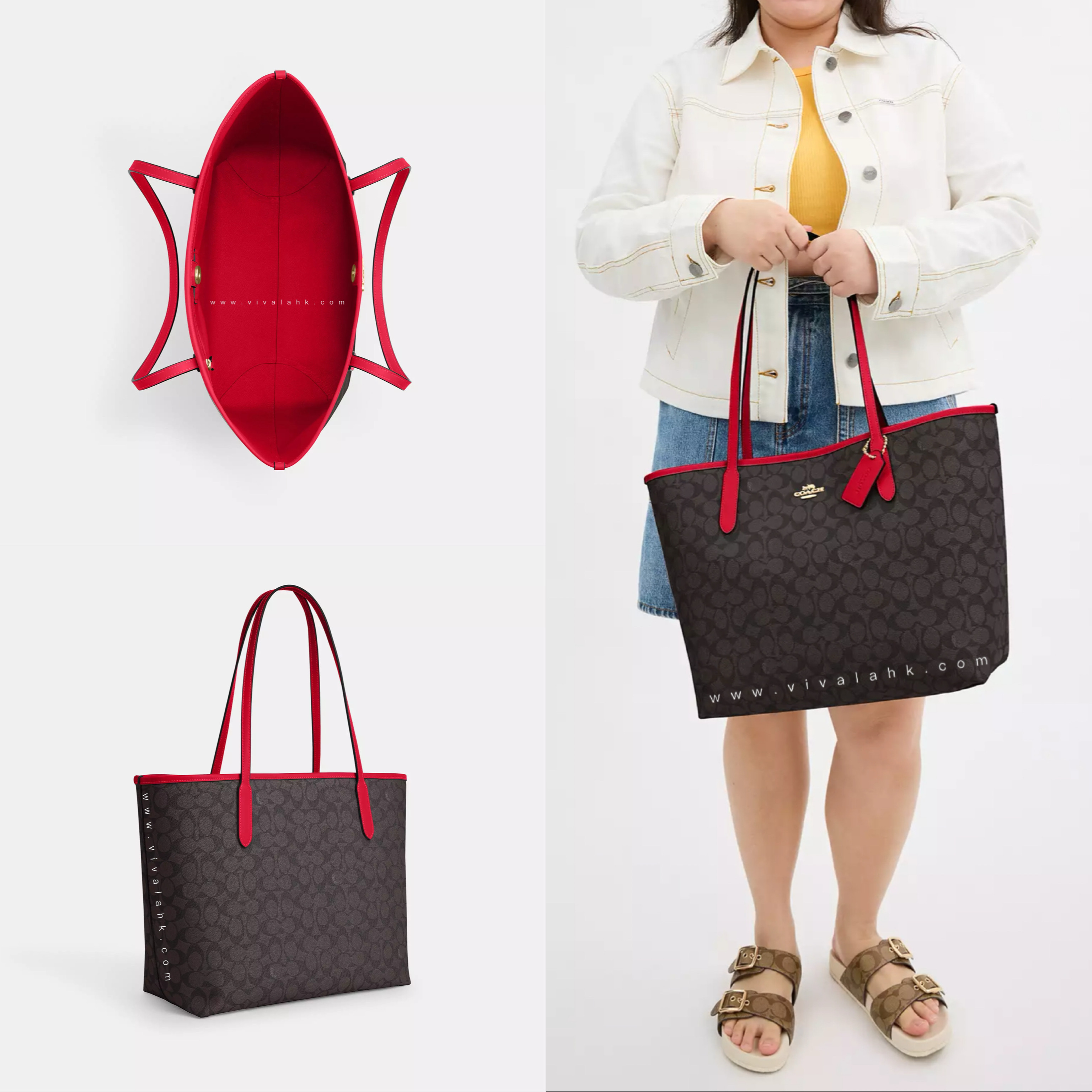 呢款Coach City Tote就係你生活嘅好拍檔!用上Coach經典防刮帆布加皮革修邊,袋身耐用又靚,容量夠大,裝到手提電腦、日常用品、甚至出街買嘢都好啱。簡單大方嘅設計再配埋Coach吊飾,無論返工定出街都好襯~