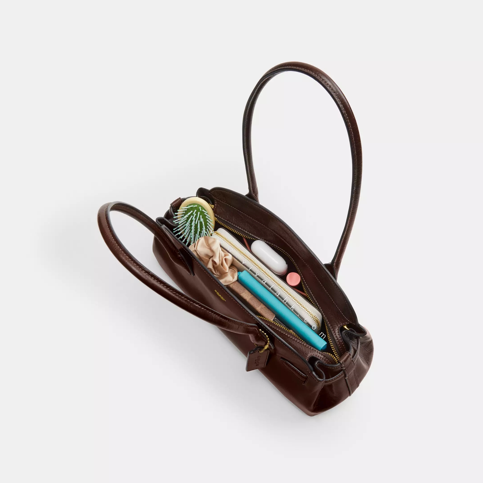 呢款 Coach Empire Carryall Bag 34 (Patent Leather) 真係充滿高貴復古感 ✨,採用光澤感十足嘅專利皮革 (Patent Leather),配合簡約優雅弧形袋身設計,無論返工定係出街約會都勁有氣場。長手挽設計方便單膊或手提,容量十足,日常用品如化妝袋、銀包、電話、細平板都輕鬆裝得晒,係一個兼具實用同時尚嘅百搭之選。