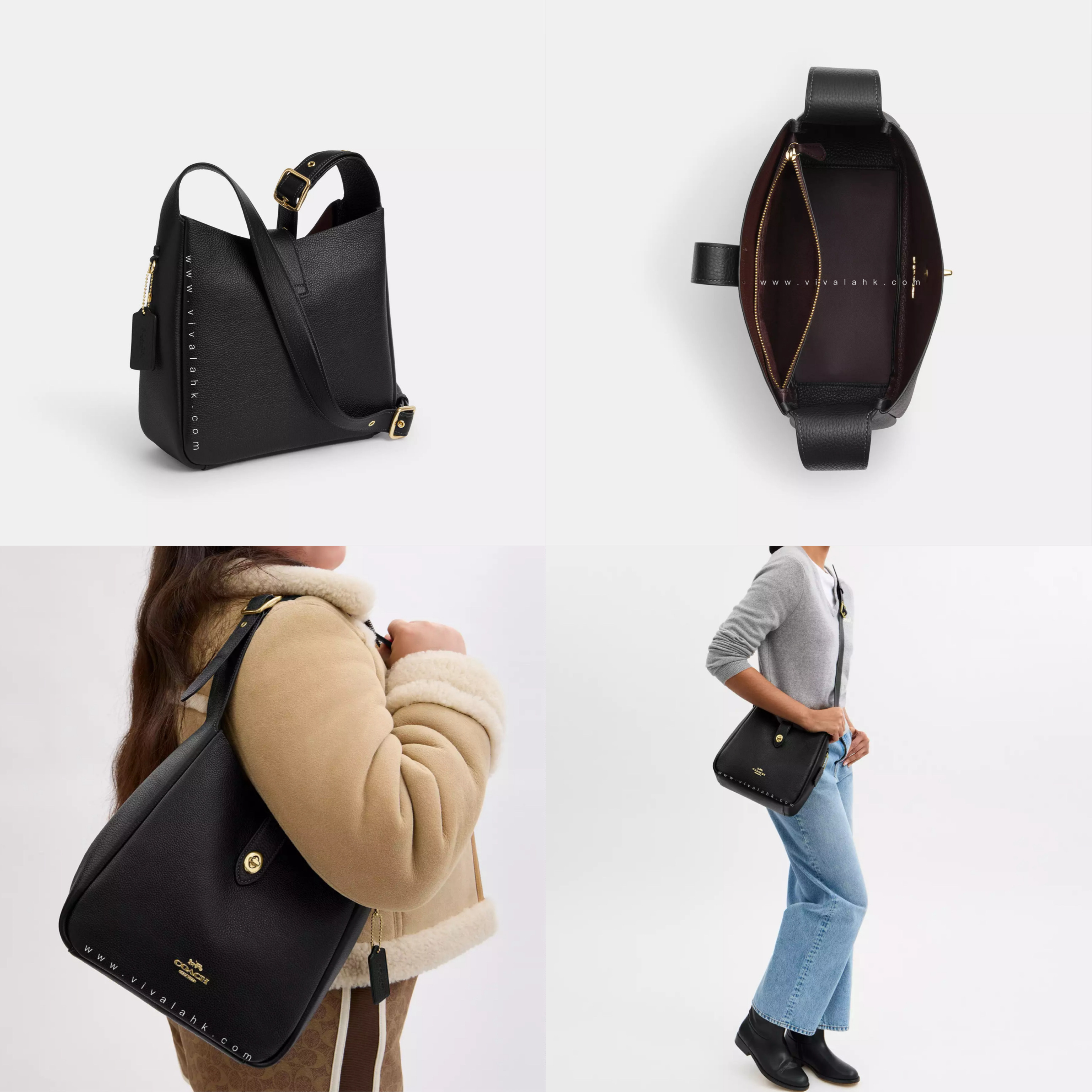 Coach Hadley Convertible Crossbody Bag 採用 高級 Pebble 皮革 製造,手感柔軟,耐用又有質感💎。簡約梯形設計,配搭 金色五金 LOGO,散發 低調奢華感💫。呢款手袋最大特點係 3 Way 用法,可以 手提、側揹 或 斜揹,一袋多用,任何場合都啱💖!容量超足夠,手機📱、銀包💰、化妝品💄 都放得落,日常出街、返工、約會都 實用又時尚✨!