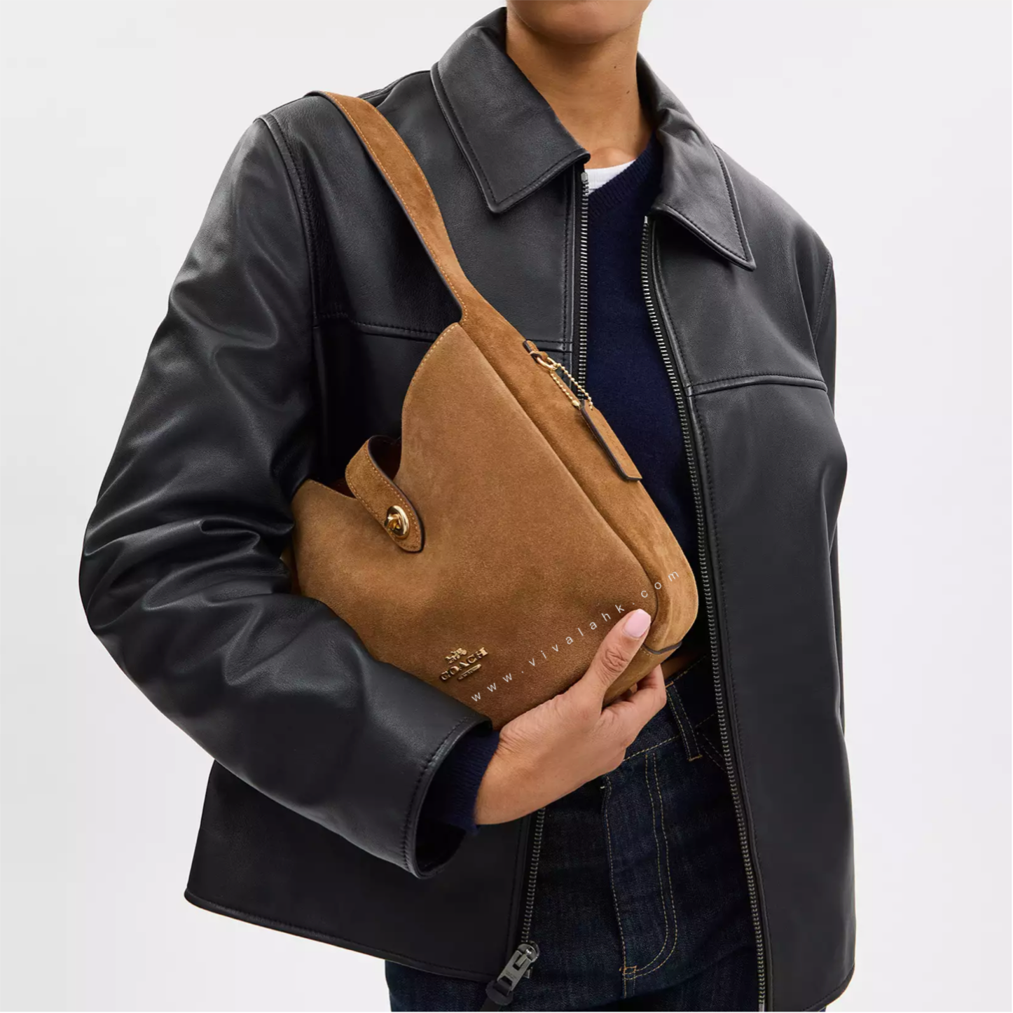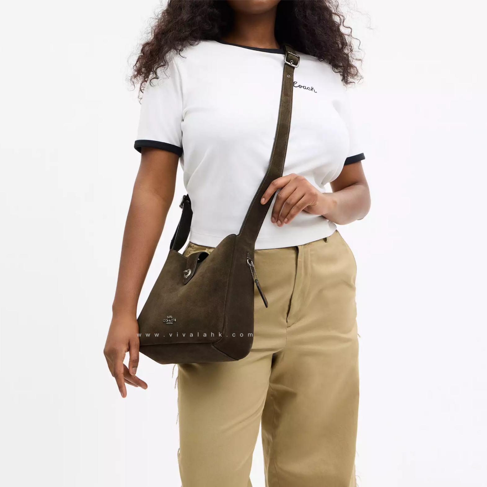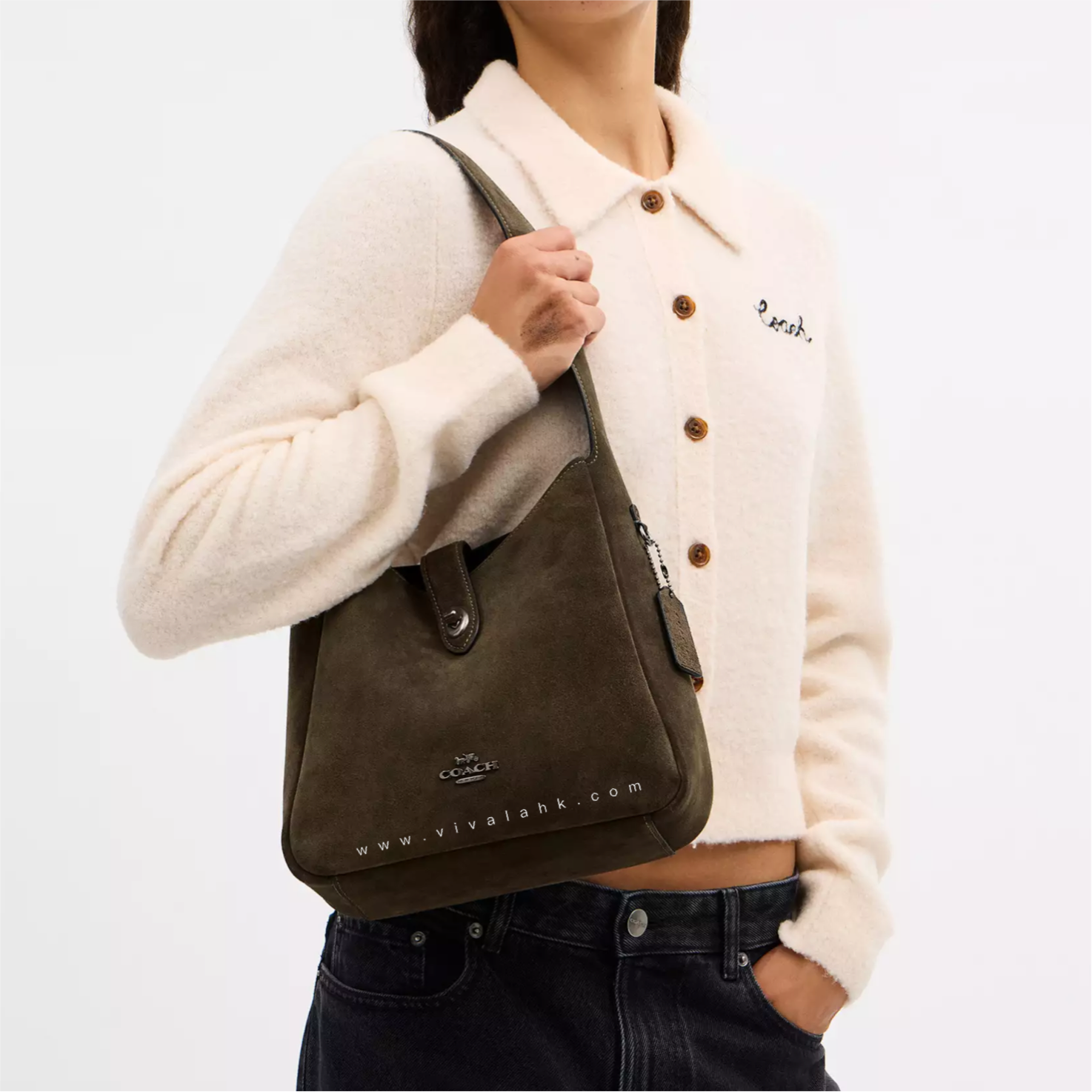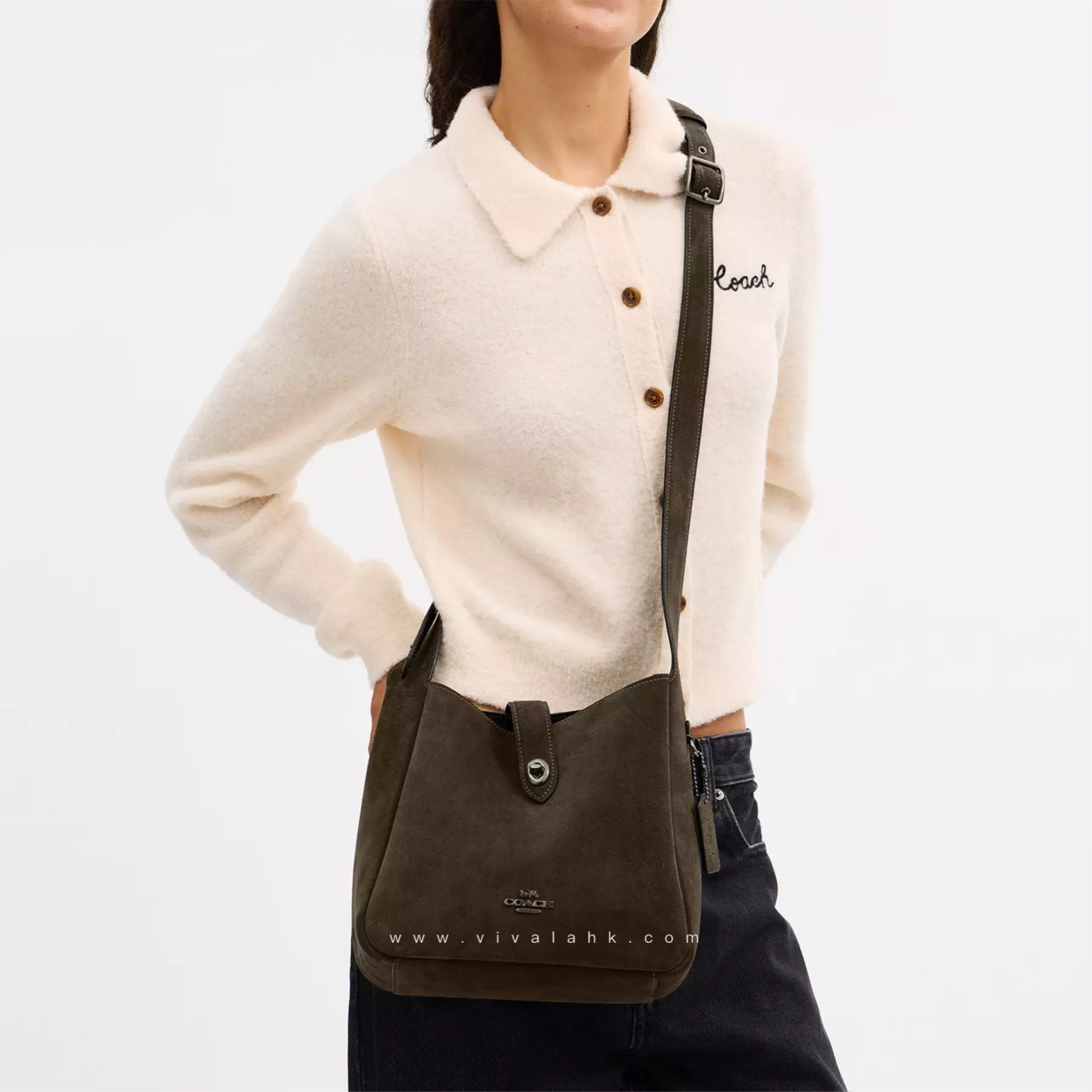 呢款 Coach Hadley Convertible Crossbody Bag (Suede Leather) 真係靚到爆💥~用上高質感麂皮 (Suede) 材質,手感超柔滑,帶出濃濃秋冬氣息🍂~金色旋鎖加上Coach logo,低調得嚟又充滿高貴感💎。可調節肩帶設計,斜孭、側孭、手提都一樣型~容量實用得嚟又輕巧,日常出街定去旅行都啱晒!💃