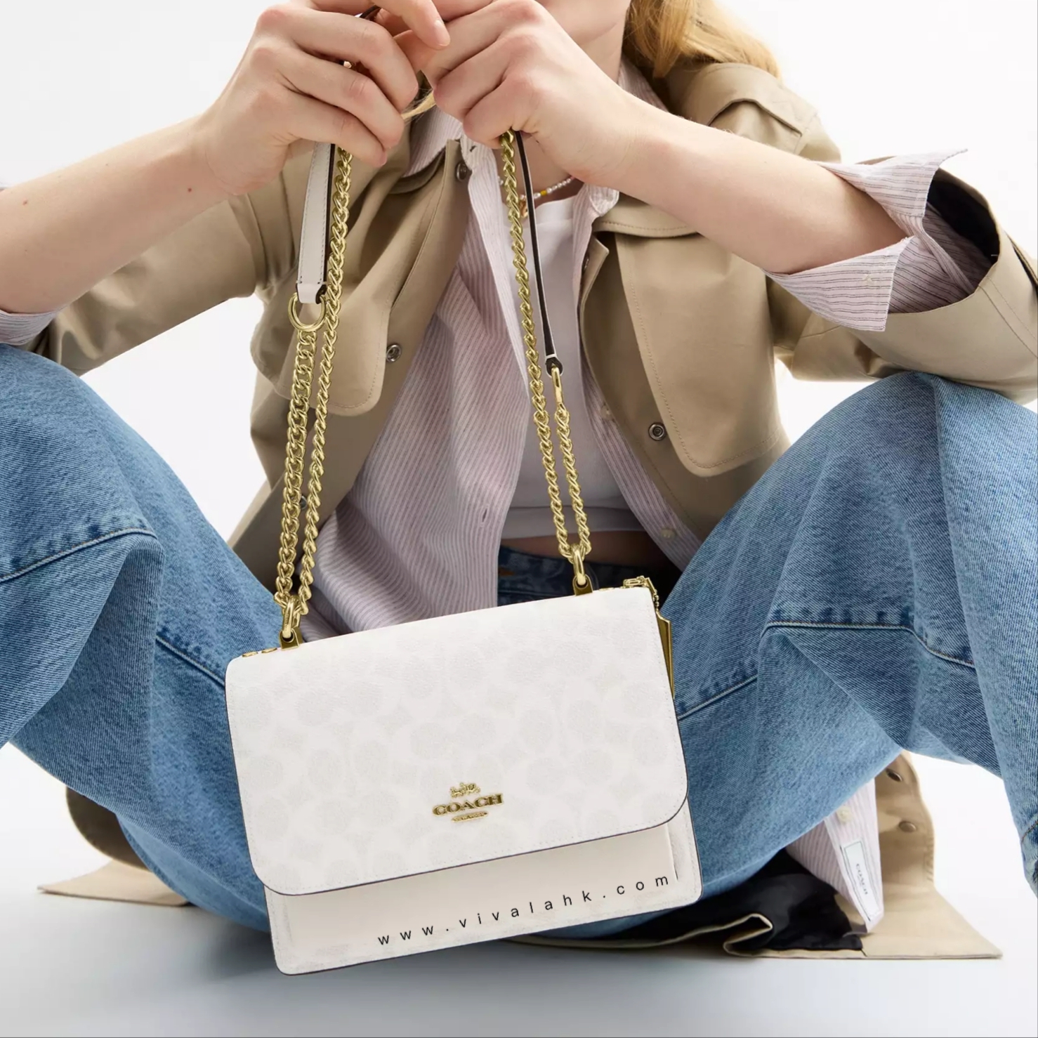Coach Klare Crossbody 採用 品牌經典 Signature Canvas 配搭 光滑皮革,展現獨特奢華感。袋身設計 俐落簡約,金色鏈帶增添時尚感,可肩背或斜揹,輕鬆變換造型!內部三層隔間設計,方便收納手機、銀包、卡片等日常用品,是日常、約會、上班的 百搭時尚之選