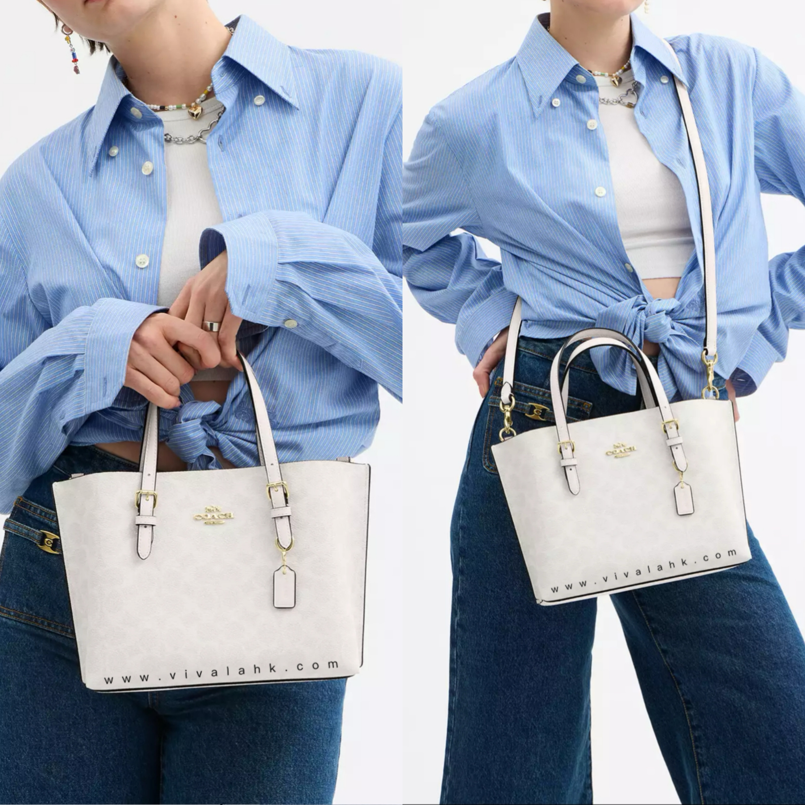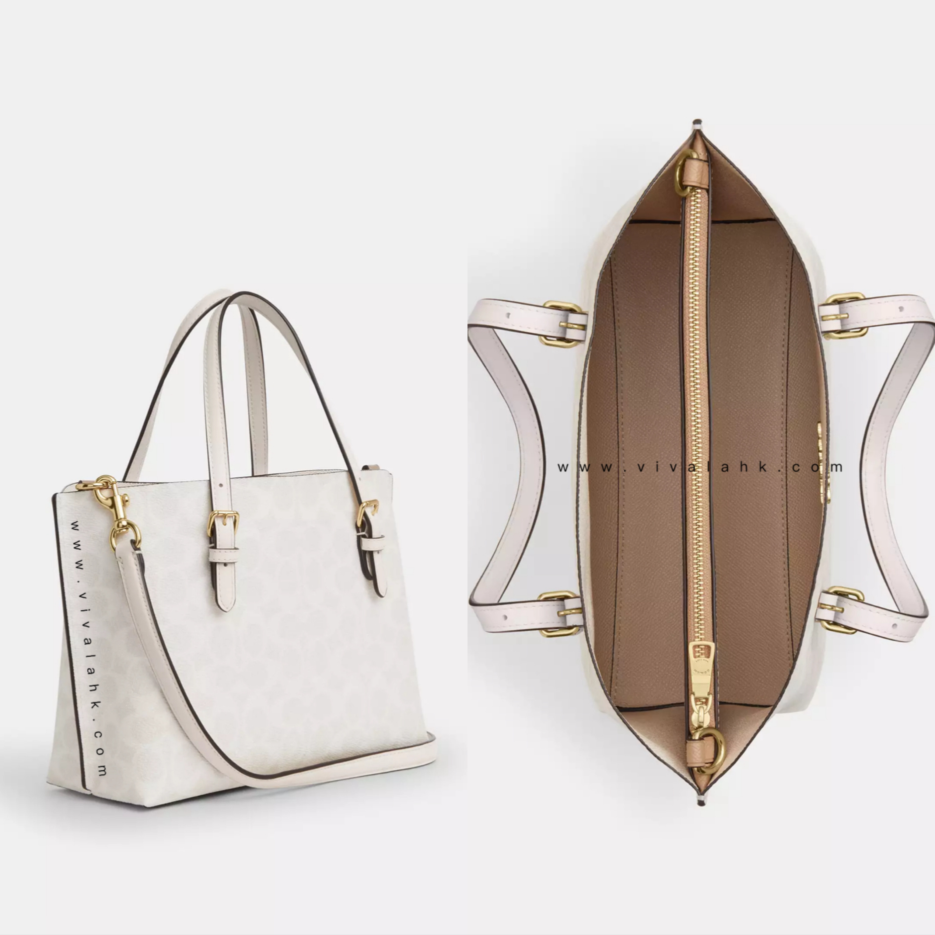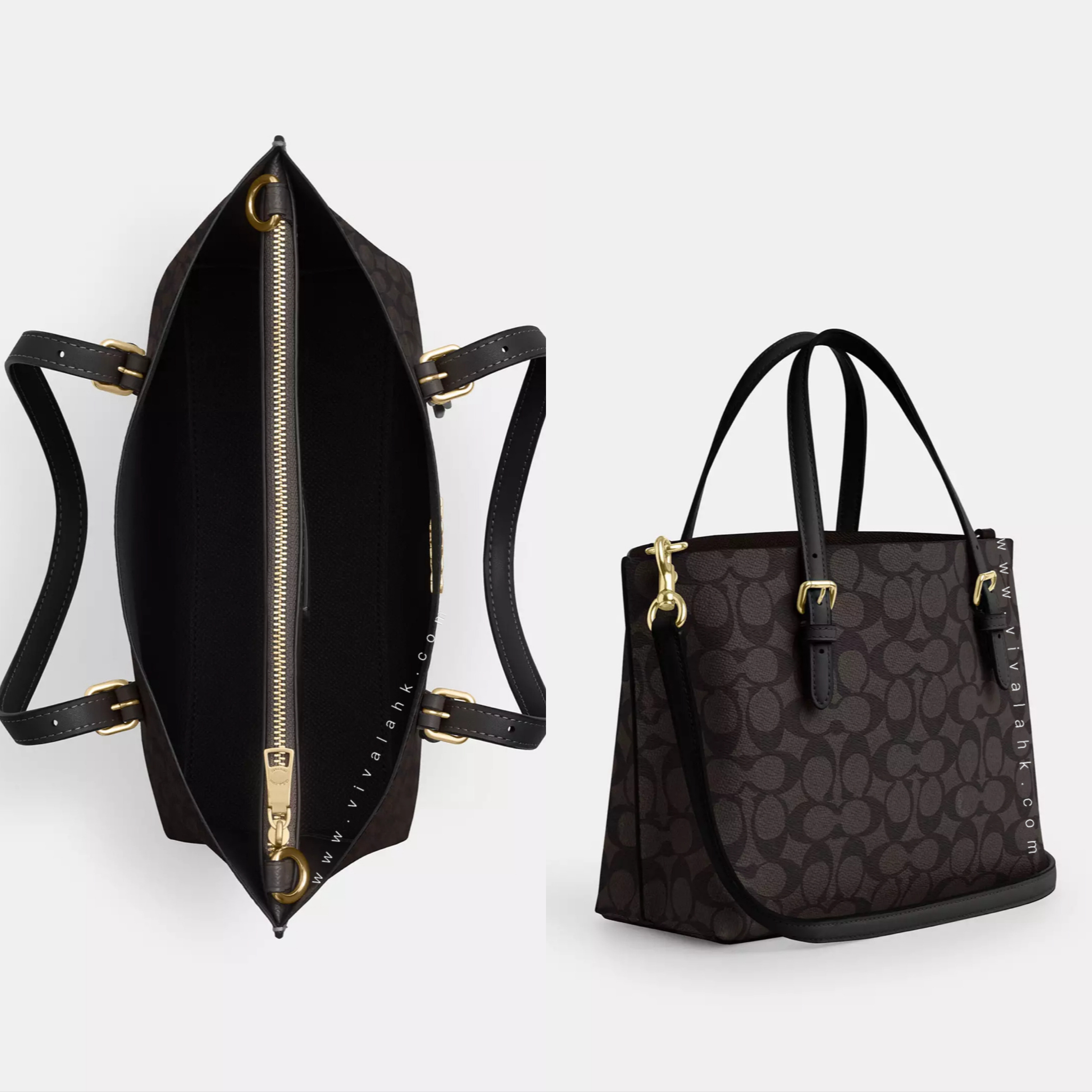 Coach Mollie Tote 25用經典Signature Canvas設計,夠晒時尚又實用!袋身細細個,啱晒每日帶出街,配有靚皮革邊框、金色五金扣件,仲有可拆式揹帶,手挽、斜揹都好靚~袋內有拉鏈中格,方便收納,仲有多功能間隔放晒日常用品。無論返工、買餸定約會都咁啱用,襯衫一流!