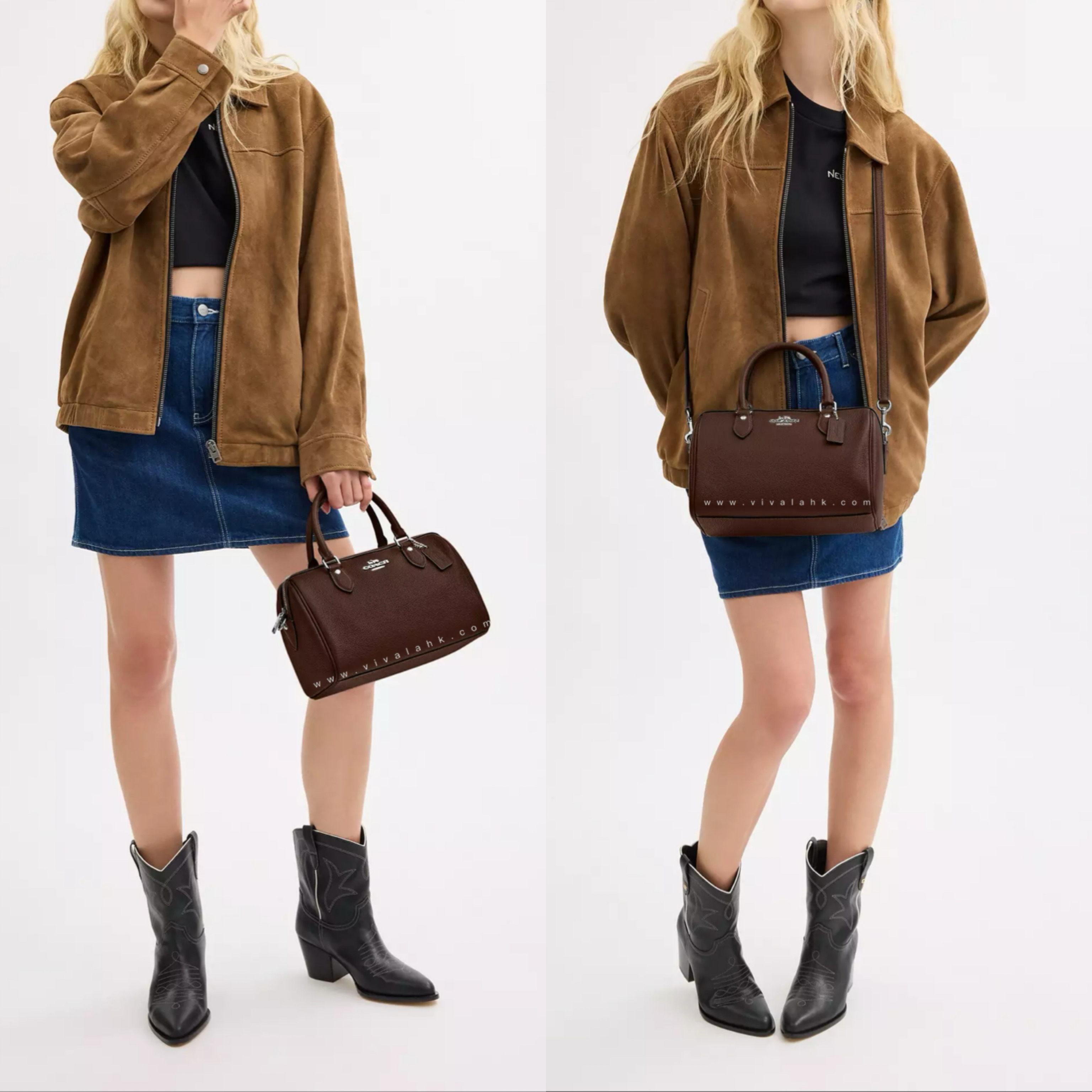 Coach Rowan Satchel 手袋,經典又百搭!用上高級Pebble Leather,耐用又型格,配搭金色金屬件,時尚又貴氣。內部超闊落,仲有外置拉鏈袋,方便放隨身物品。手挽設計盡顯優雅,同時附有可拆式斜孭帶,隨時轉變造型,返工、約會、假日都啱用!