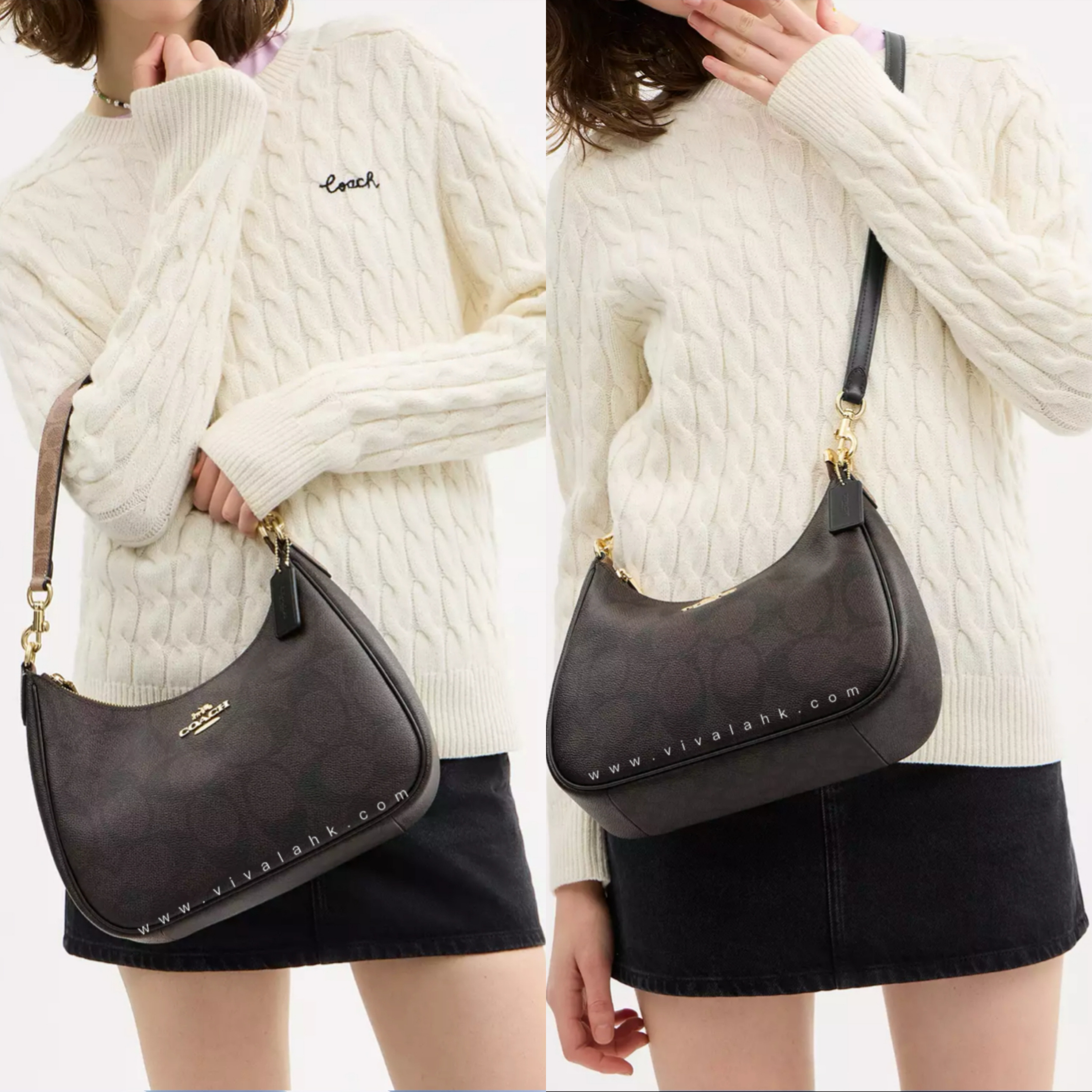 呢款 Coach Teri Hobo Bag 用咗經典Blocked Signature Canvas拼色設計,配上亮金色金屬件,低調又高貴✨。輕巧袋身加上半月形輪廓,無論手挽定斜揹都好靚😍。內部容量充足,仲有外袋方便攞取日常小物,啱晒返工、Shopping同約會💼🛍️💃。