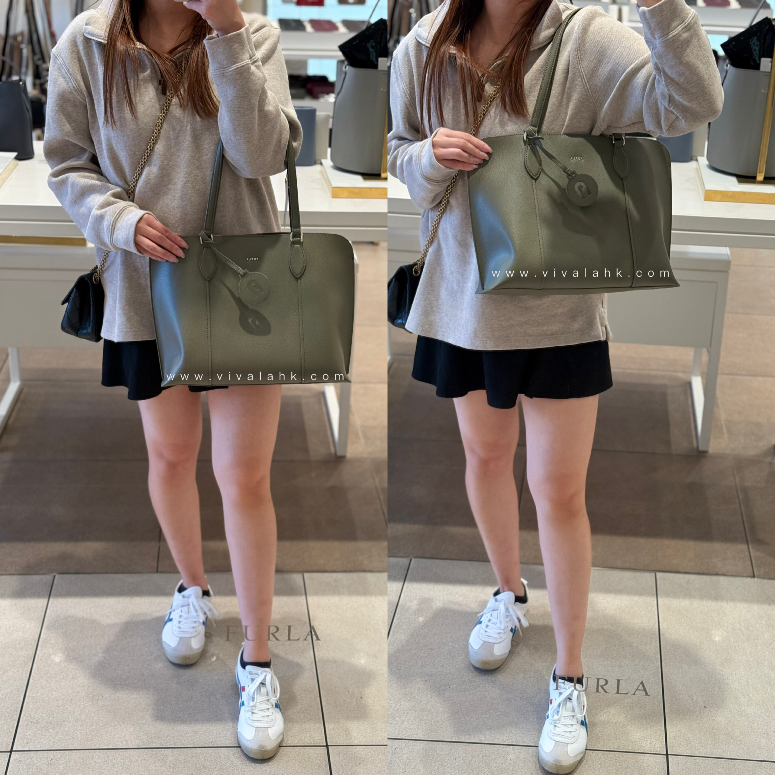 Furla Vittoria Large Tote 啱晒鐘意靚又實用嘅女生!呢個大手袋用上高質感嘅真皮製造,線條簡約,款式高貴。內部空間超大,仲有拉鏈小袋,放嘢整齊又方便。手挽位實淨又好拎,磁石開關用起上嚟又穩陣。啱晒返工或者平時用,黑色、灰啡色、橄欖綠啲色都係百搭之選,想要高質又型格嘅袋就一定唔好錯過!