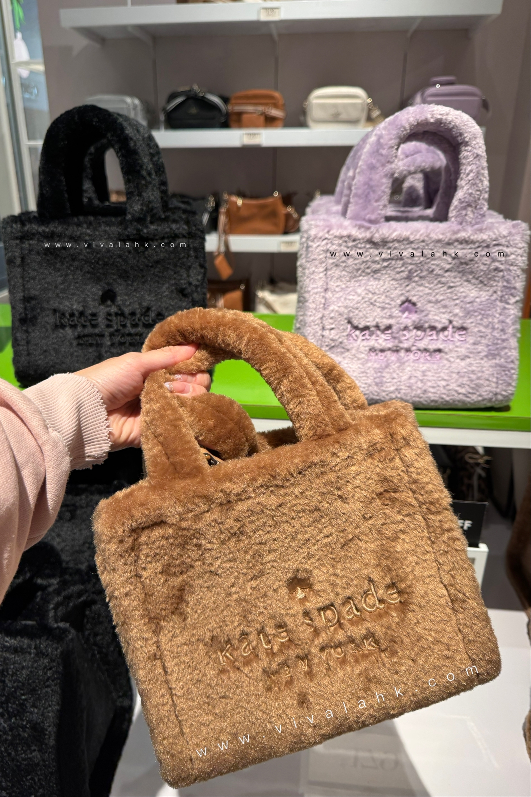 呢款 Kate Spade Ellie 人造毛毛細手挽袋 真係冇得輸!✨用高質人造毛毛製成,柔軟得嚟好高貴,冬天拎住佢即刻多咗份暖意同型格!💼 設計有手挽同拆卸式斜咩帶,平時行街定去派對都啱用!內有拉鏈袋方便收納,開口位仲好易攞嘢。袋細輕巧,日常用或者襯晚裝都一樣咁有氣質~🎀