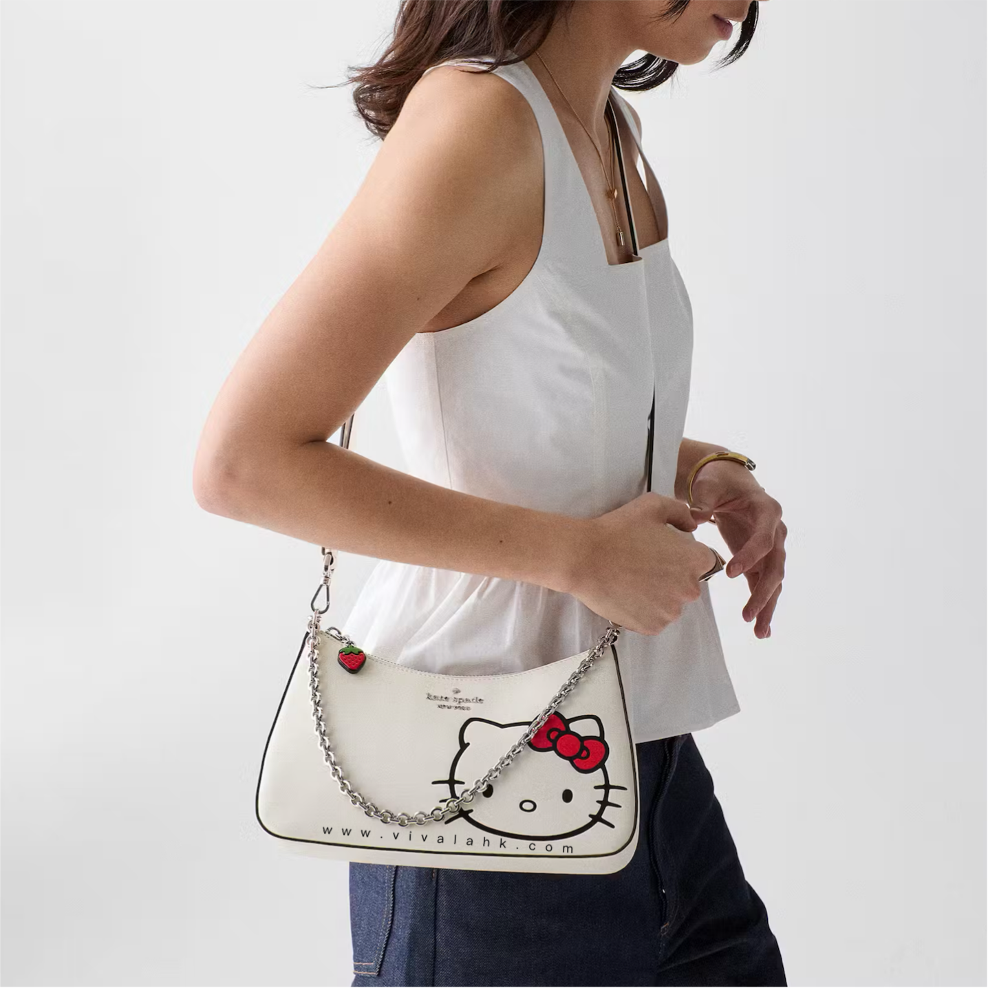 Kate Spade x Hello Kitty & Friends 聯乘系列中,呢款 Hello Kitty Crossbody Bag(KN890) 係走 簡約可愛路線 嘅人氣款 🤍🐱