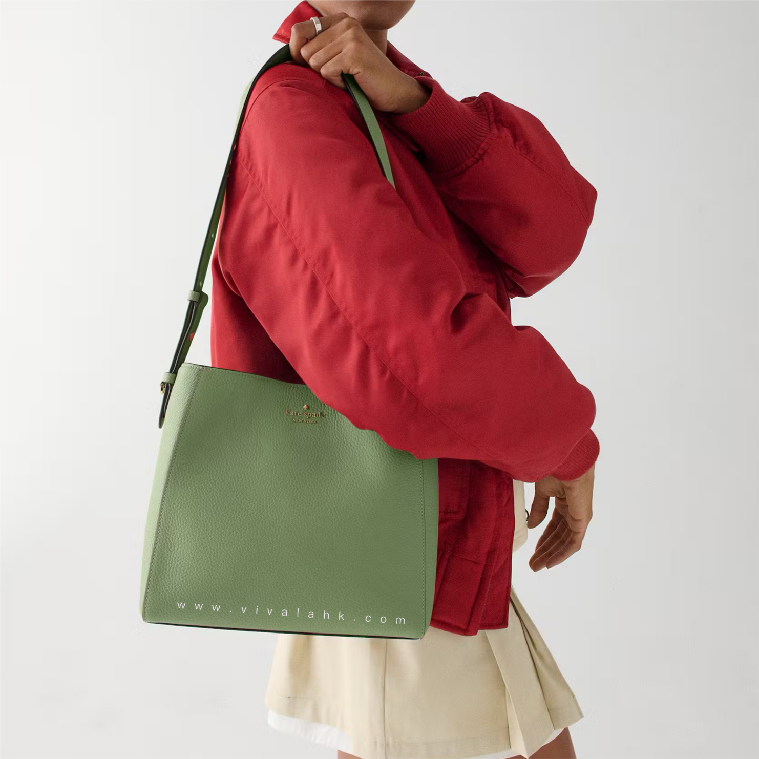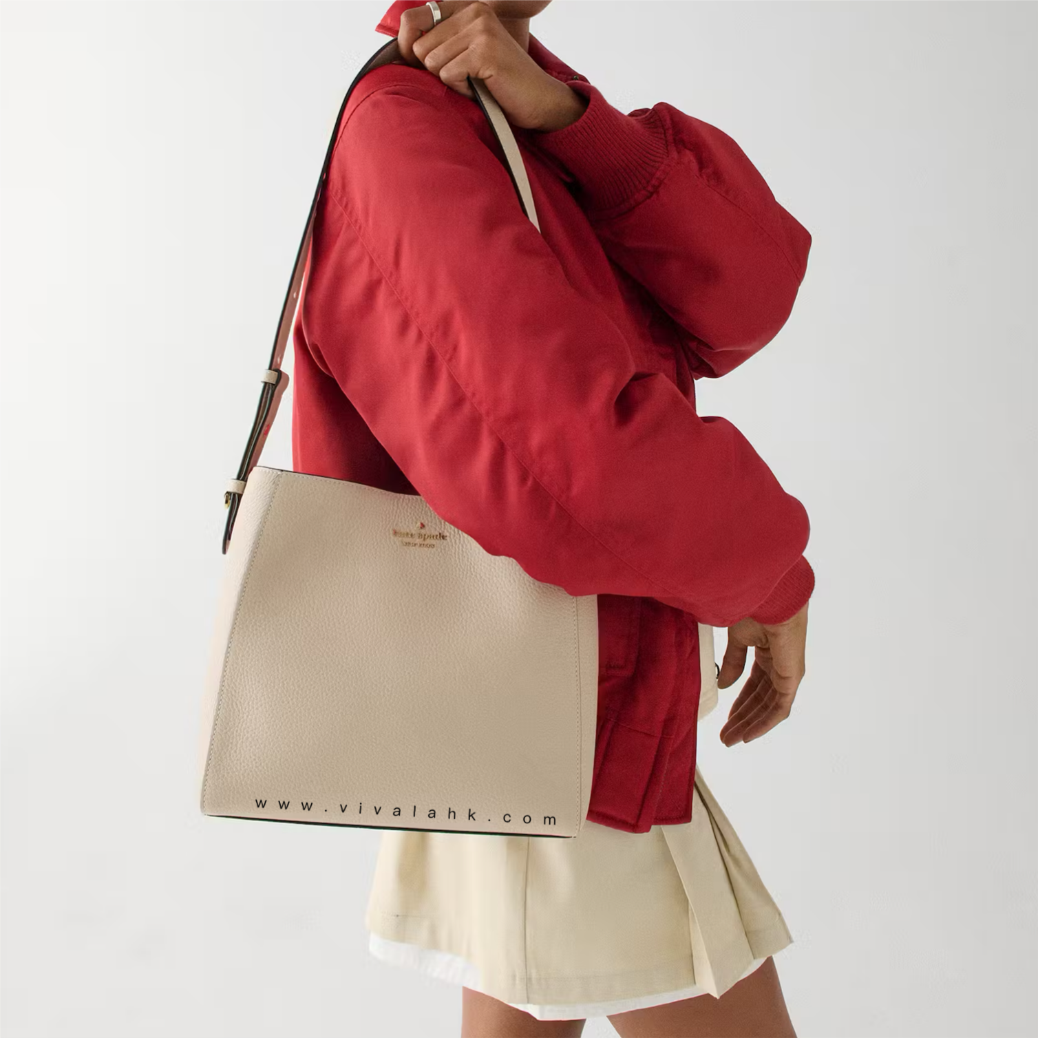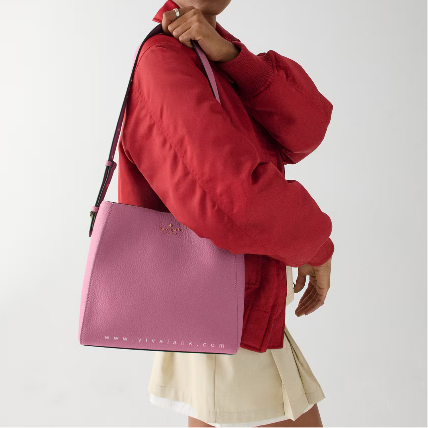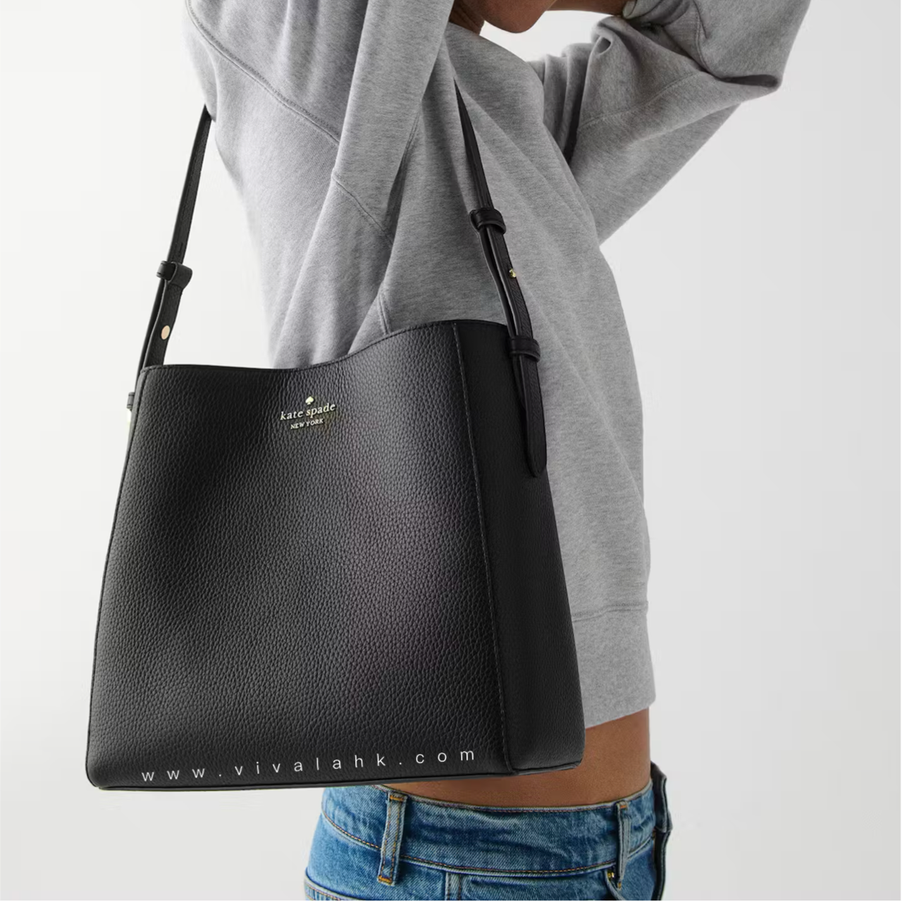 Kate Spade 呢款 Juliette Medium Bucket Bag(KM546) 真係又靚又實用🔥!成個袋用咗 pebbled leather,手感超靚又夠挺身,用耐都唔易變形,質感好到爆✨