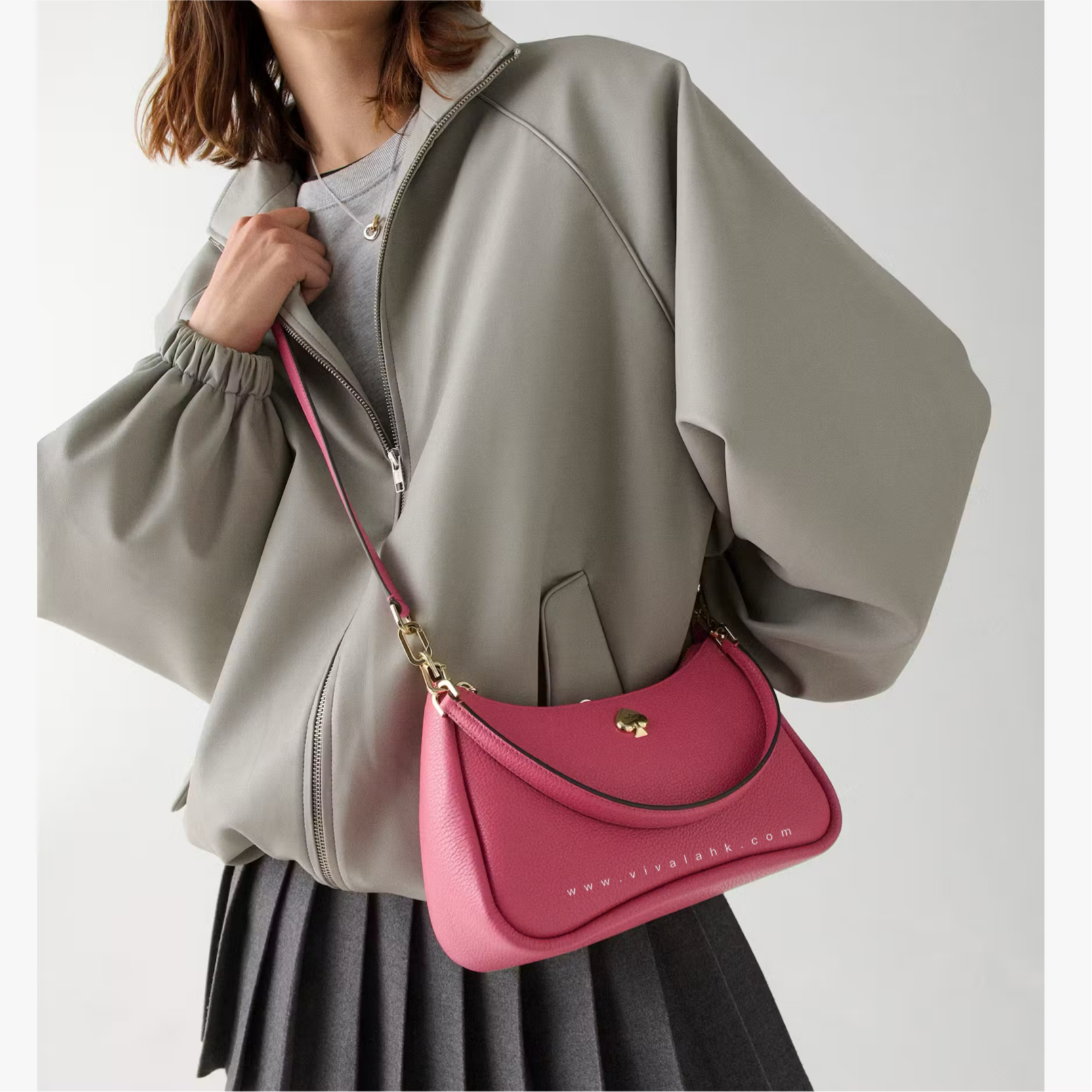 呢款 Kate Spade Kayla Small Convertible Shoulder Bag 真係少女心爆棚 💕!用咗柔軟嘅粒面皮革打造,手感高級,袋身細細但容量啱啱好,唔會太笨重。佢嘅 可拆卸肩帶設計,可以 斜揹、側揹或者手挽,出街約會定返工都 fit 晒 👌。袋身簡約優雅,加上 KS 經典 spade 五金 logo,低調中帶點精緻時尚感。多色選擇(黑色、奶油白、酒紅、粉紅、綠色、啡色等),無論 casual outfit 定係 smart look 都 easy match!✨