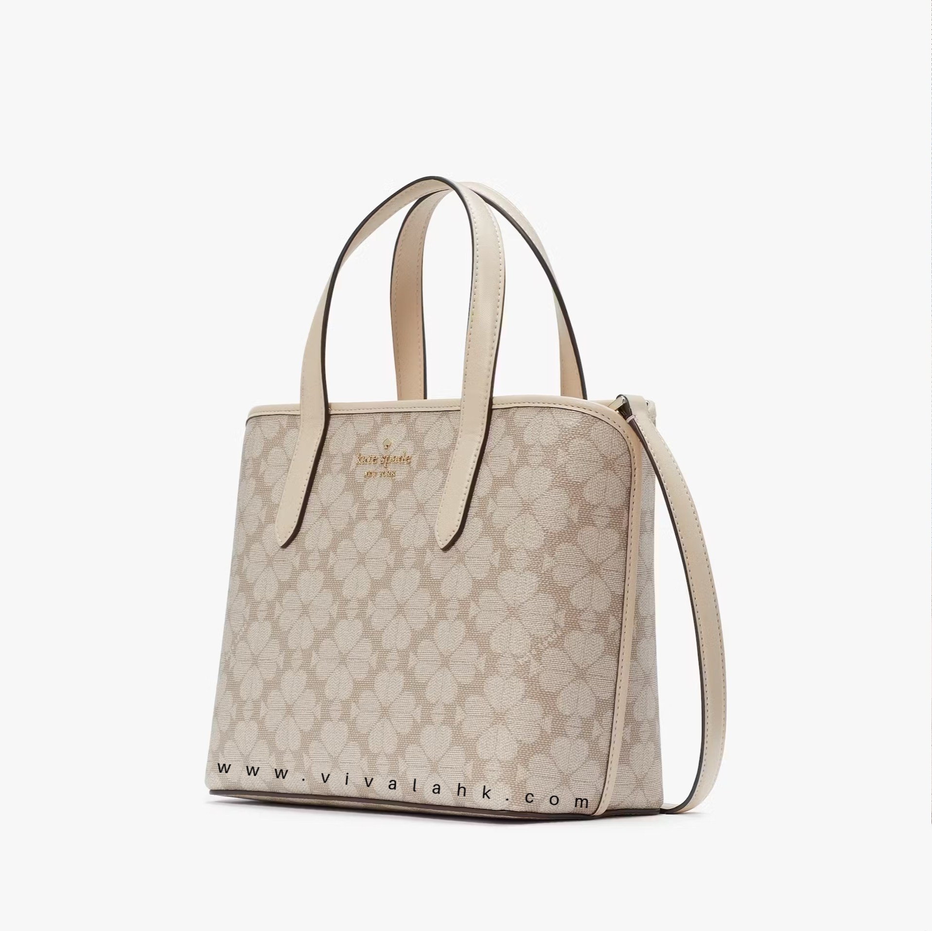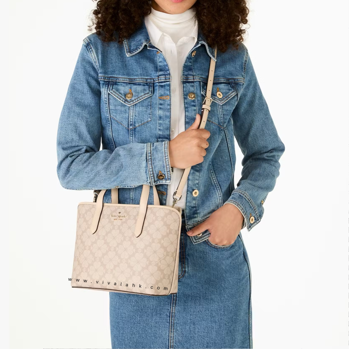 Kate Spade Signature Spade Flower Small Tote 一個集時尚同實用於一身嘅手袋!採用經典 Spade Flower Jacquard 圖案,布料防水耐用,手袋細巧得嚟夠晒實淨。仲有可拆式斜揹帶,日常上街定假日出遊都啱晒!