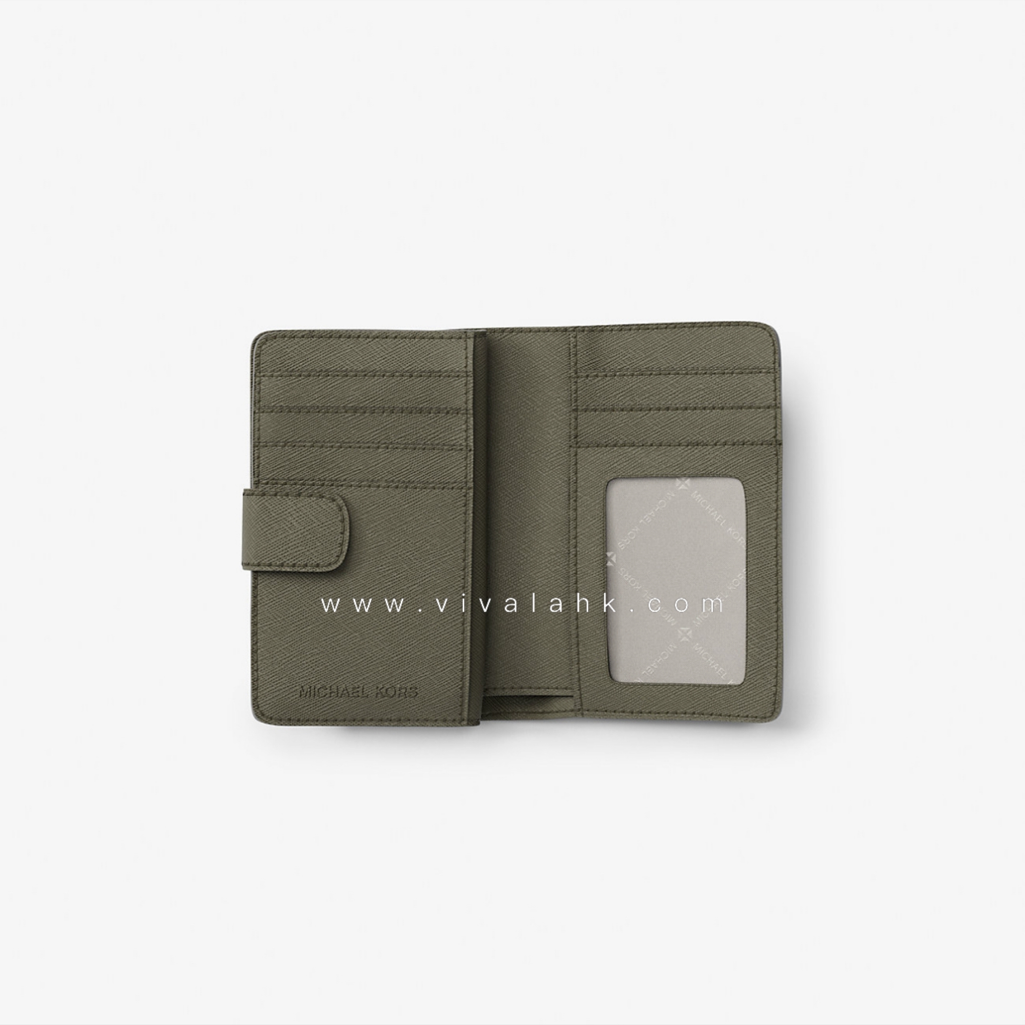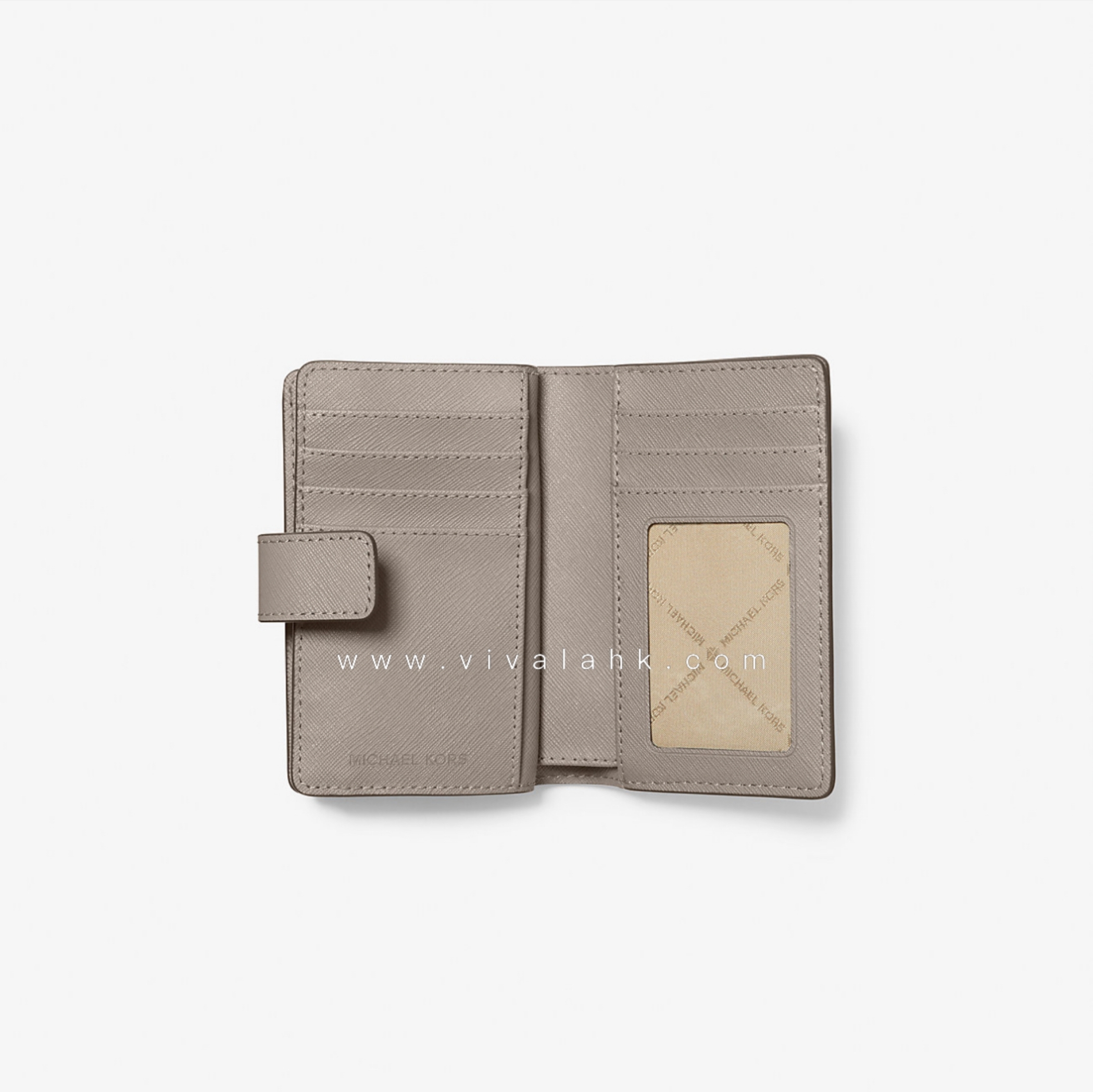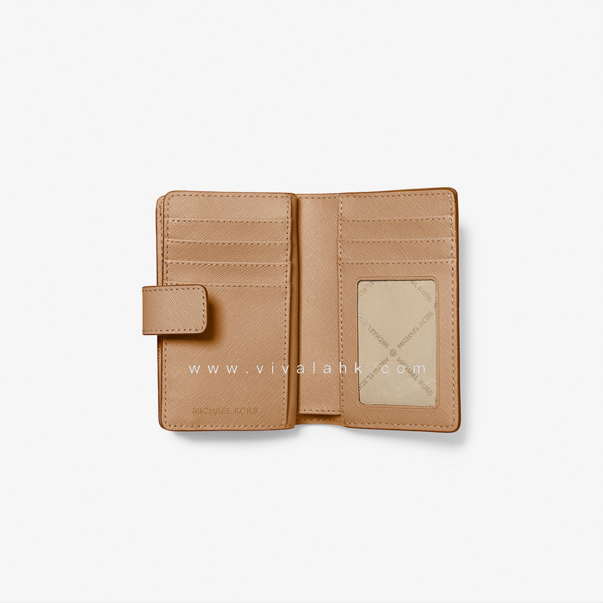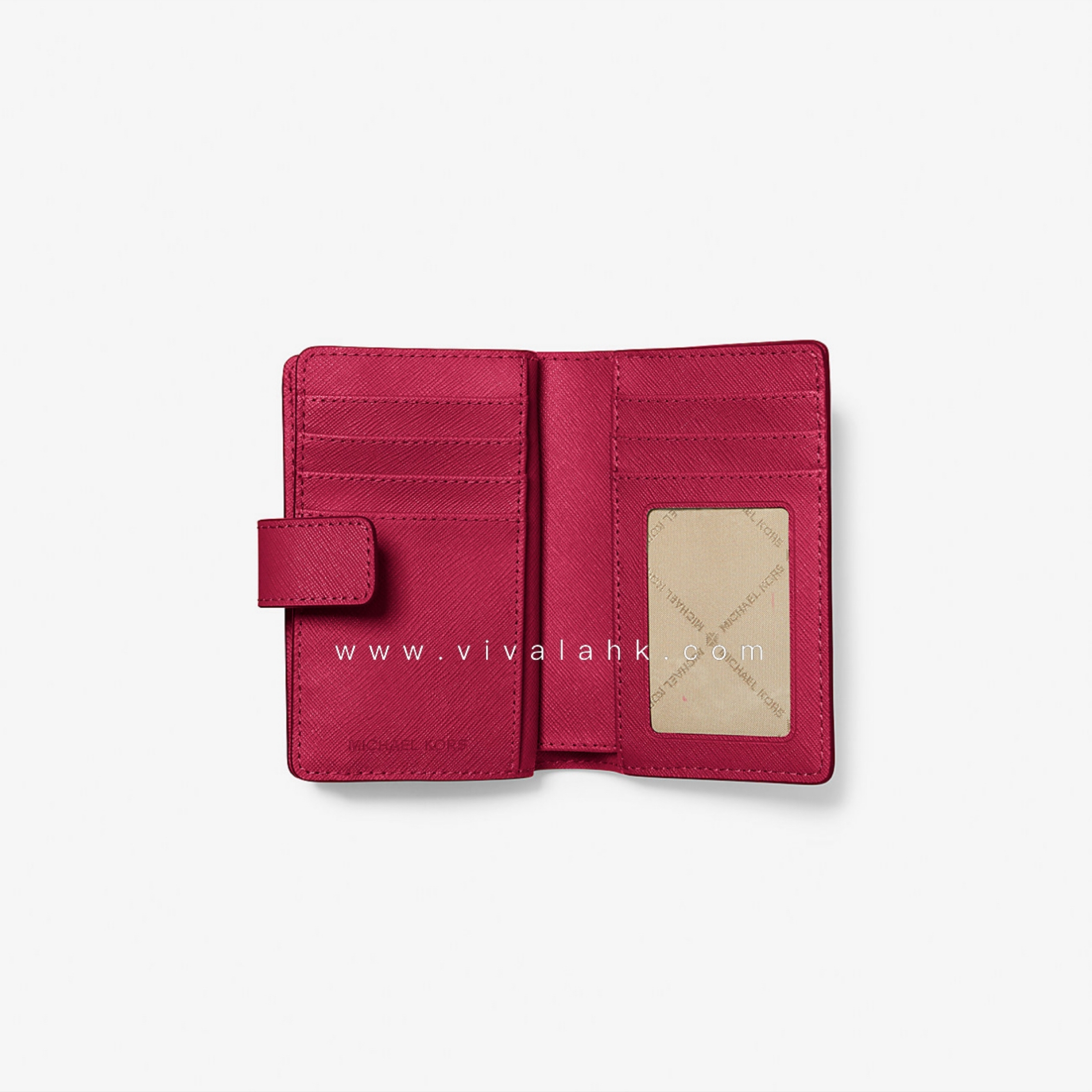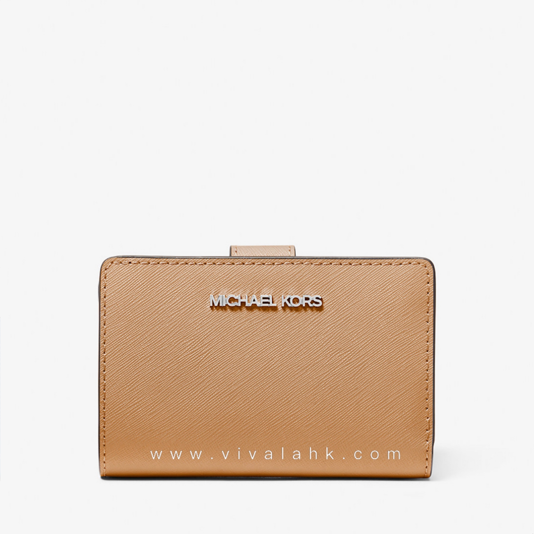 MK 呢款中size銀包,採用超耐刮嘅Saffiano皮革設計,夠晒高貴又唔怕易花~唔論日常出街、返工定短途旅行都好啱用💁♀️~開口位係Snap Button + 拉鍊設計,分開卡位、紙幣位同零錢位,夠哂實用💥!顏色選擇多,無論你係黑、白、粉、奶茶定天藍控,一定有款岩你心水❤️!