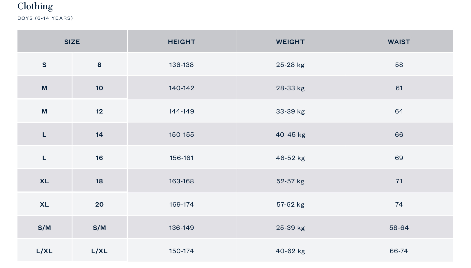 童裝尺寸 Size L = 女裝尺寸 Size S - M