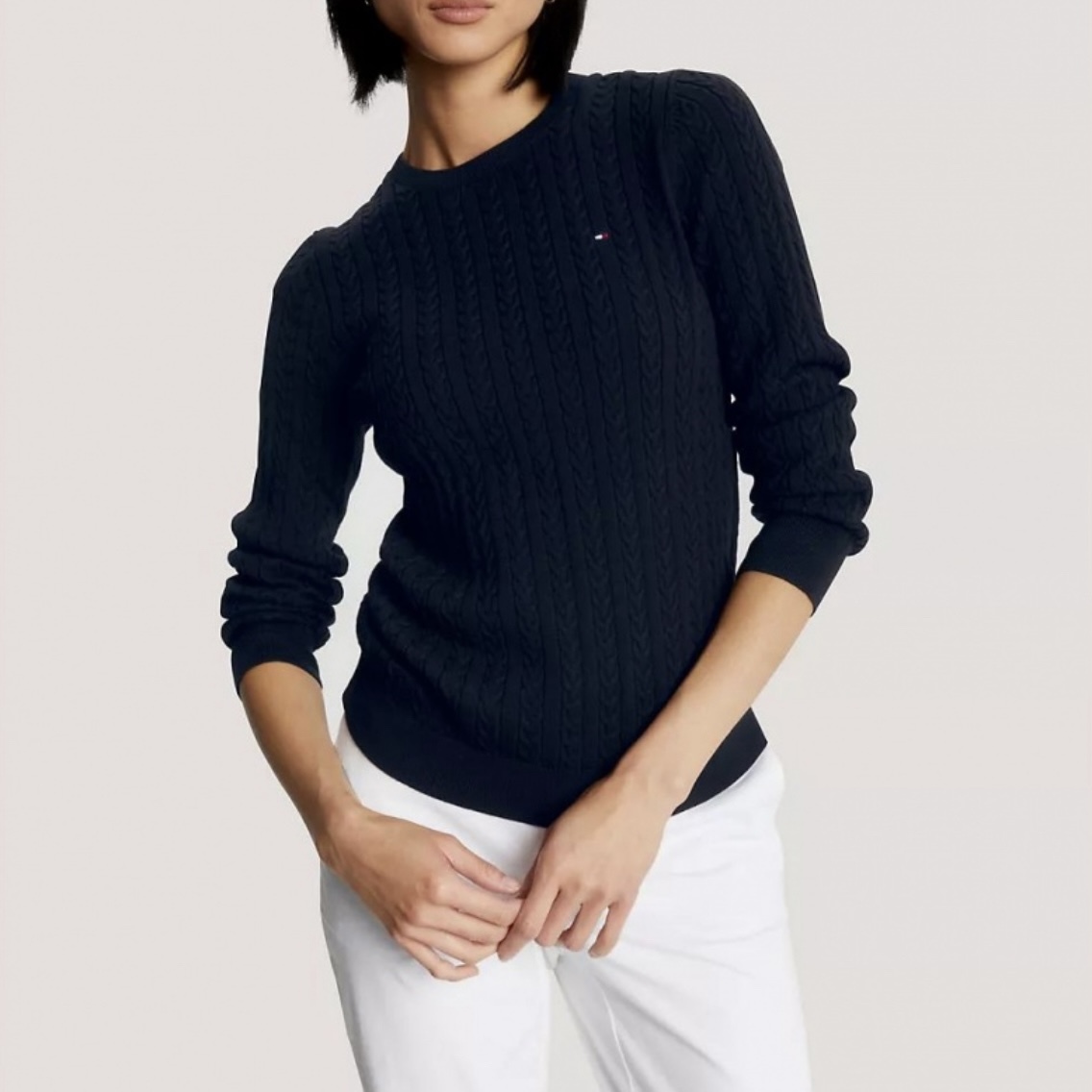 Tommy Hilfiger 辮紋冷衫,簡約中見時尚,冬日必備!呢款經典辮紋設計,有海軍藍同淺灰兩種顏色,仲有 Tommy Hilfiger 細細個 logo 點綴,低調又有型。呢件冷衫布料軟淨又透氣,無論配牛仔褲定西褲都一樣得。圓領設計同羅紋袖口,細節滿分,係你衣櫃不可缺嘅百搭單品!