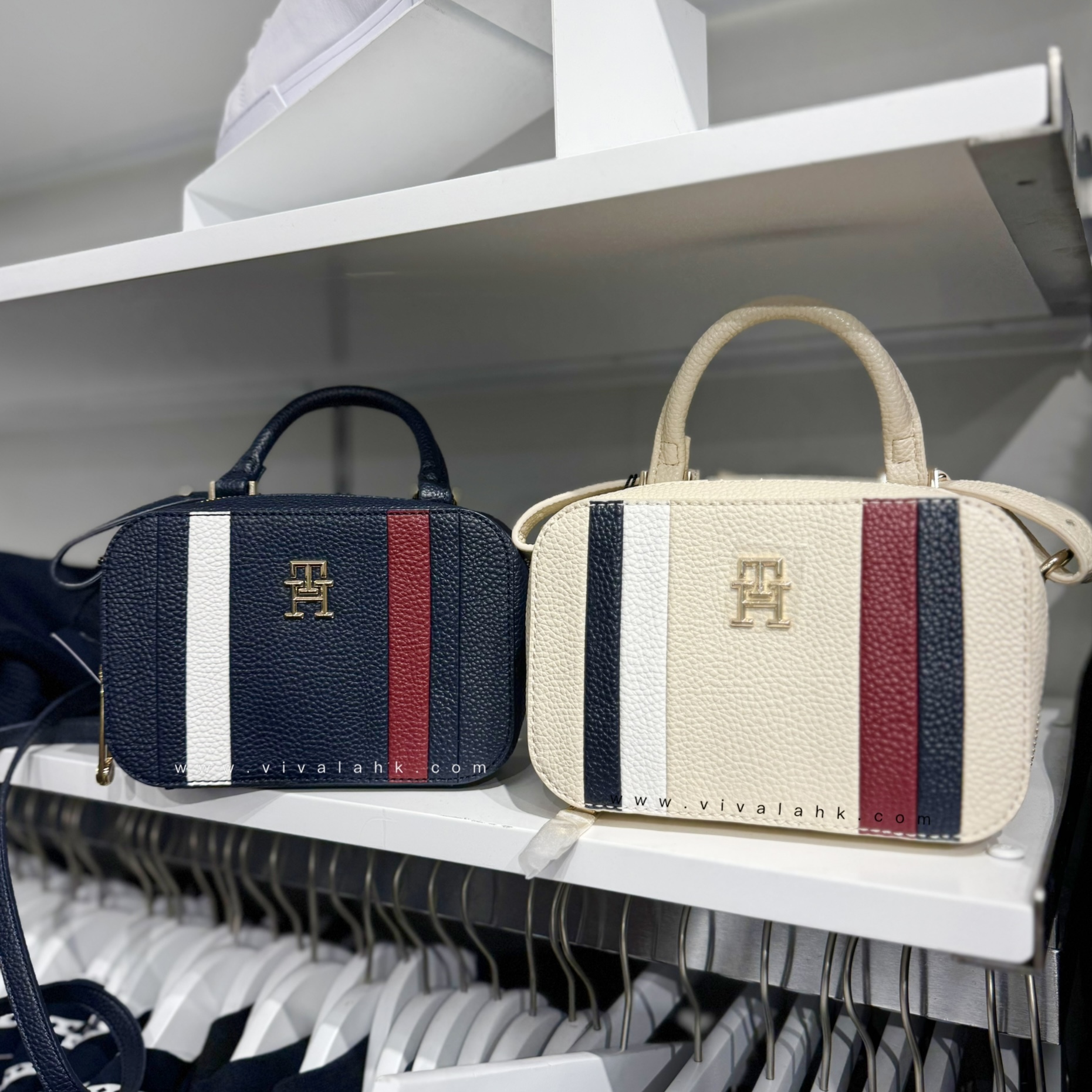 米白色皮革拼紅藍條紋設計,散發濃濃美式復古味道🇺🇸,仲有品牌經典「TH」金屬logo✨~