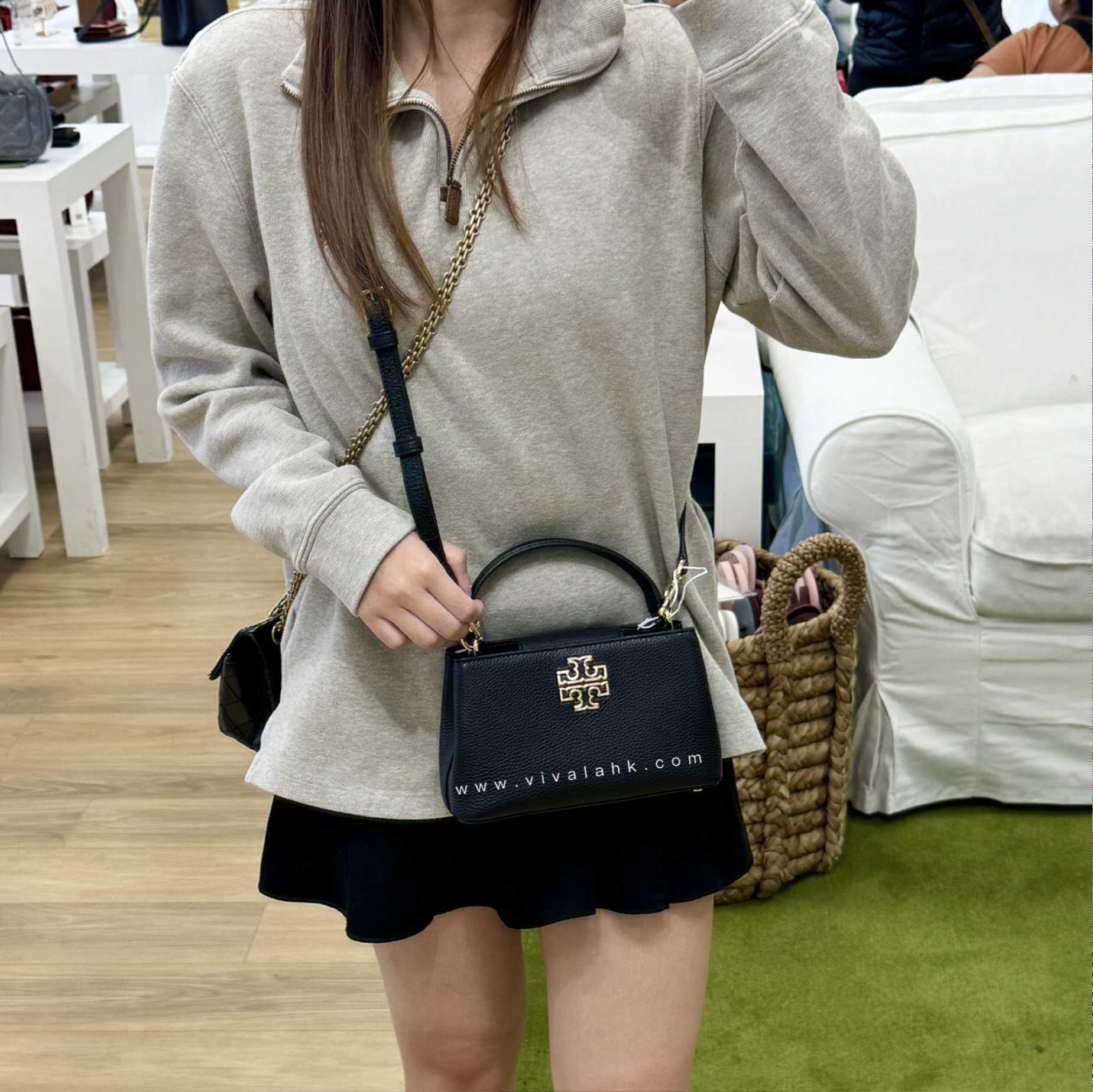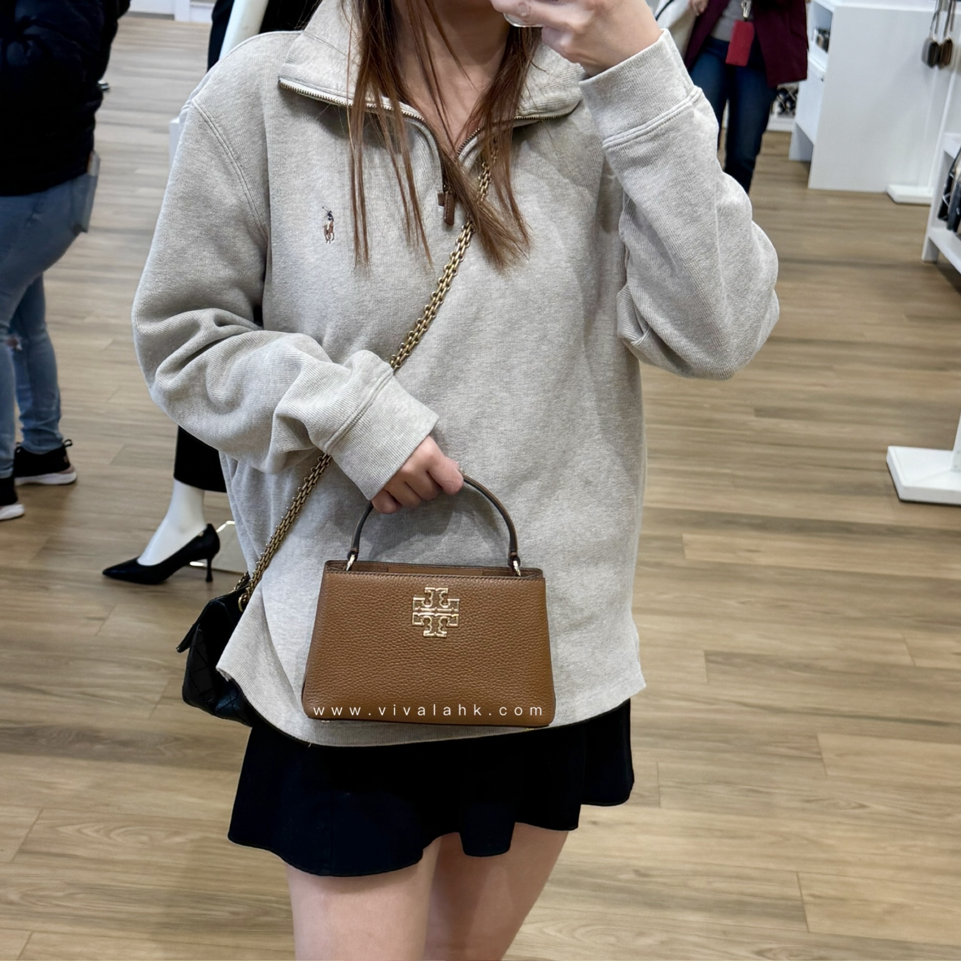 呢款 Tory Burch Britten Micro 手挽袋,集實用同時尚於一身~採用高質啡皮革製成,加上招牌雙T金屬Logo,簡單又靚!設計細緻,有手挽同斜揹鏈帶,日夜都啱用,襯衫都冇難度~輕便又好裝,啱晒鐘意時尚又實用嘅你!