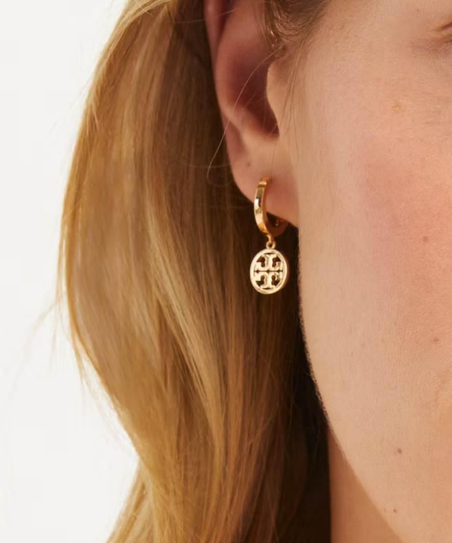 呢對 Tory Burch Miller Huggie Hoop Earrings 以 經典Miller Logo 加上 小巧圈環設計,散發出簡約但唔失大氣嘅感覺 ✨。金色光澤低調奢華,襯衫、返工、約會都啱啱好,日日戴都零負擔。💛