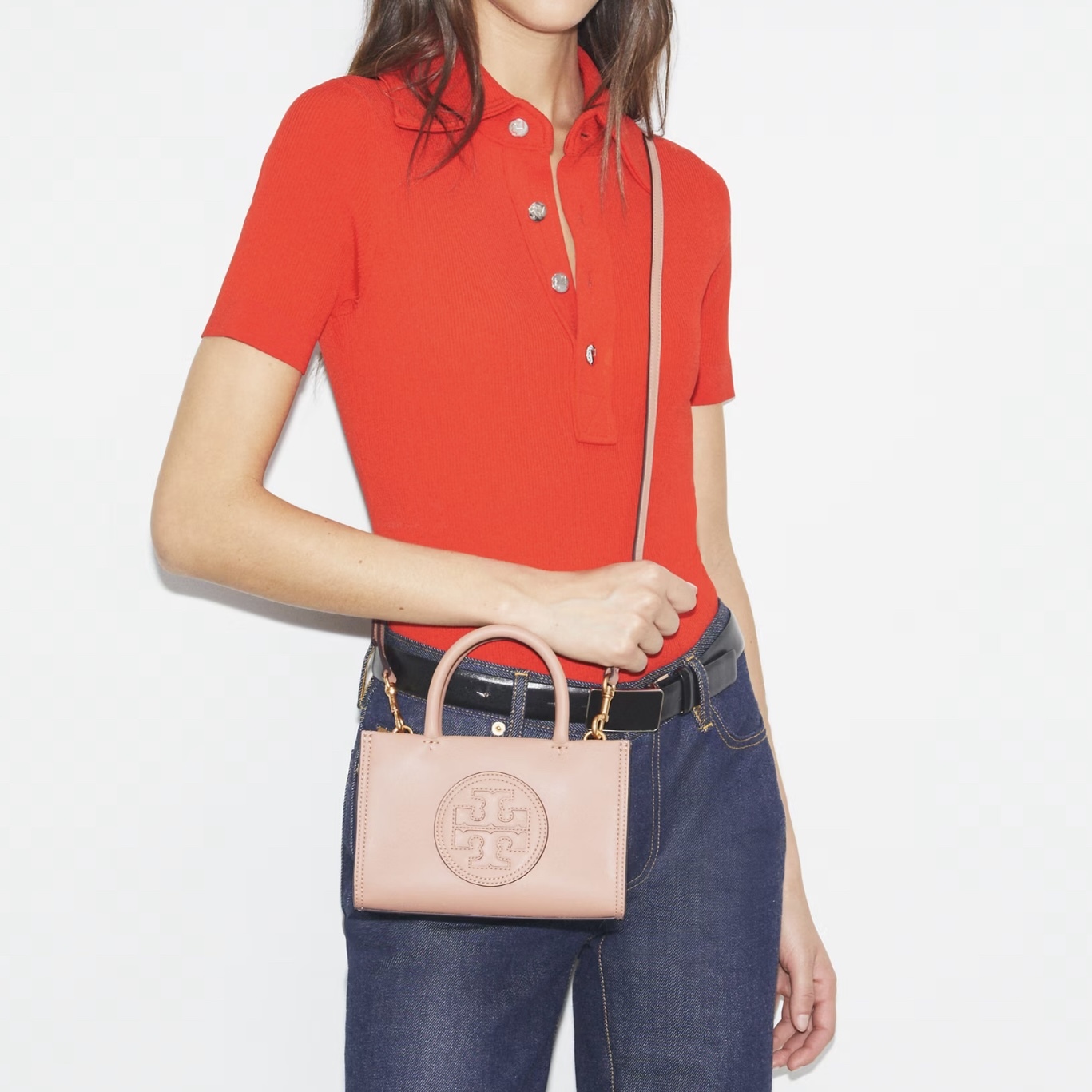 呢款 Tory Burch Mini Ella Bio Tote 真係又Chic又環保 🌱!用咗可持續物料打造,手感滑又夠挺身,夠晒輕巧但容量仲好夠用,啱哂每日返工、shopping、出街。袋身有大大個Tory Burch logo,簡約中帶啲型格 ✨。雙手抽加長肩帶設計,手提又得、斜揹又得,點襯衫都咁match。