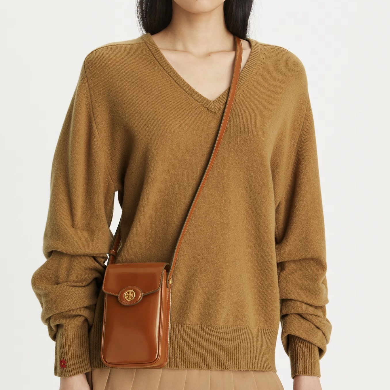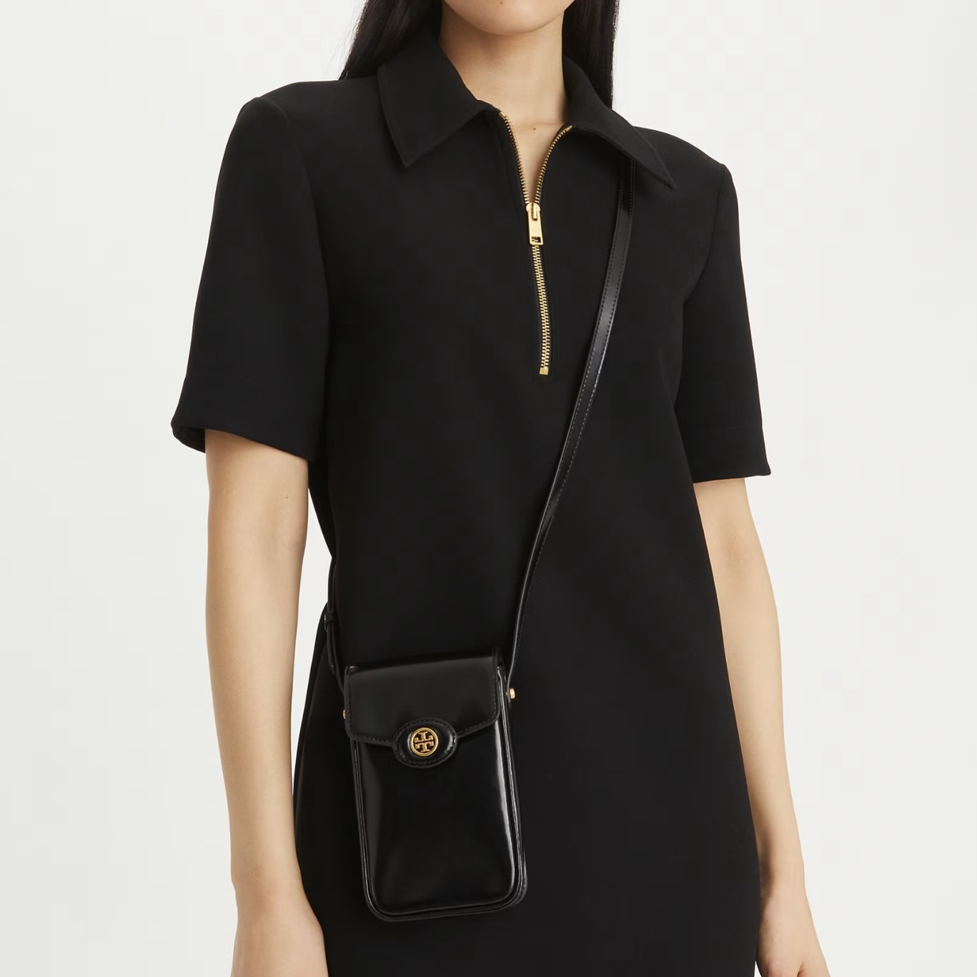 呢個 Tory Burch Robinson Spazzolato Phone Crossbody 用上光滑 Spazzolato 皮革設計,成個感覺夠晒 簡約高貴又有型✨。袋身幼長線條非常纖巧,啱晒出街帶電話同埋少少卡片、cash,解放雙手又夠classy。加上 可調節斜揹帶,無論係 casual tee + 牛仔褲定係 one piece 裙,都可以 effortless carry 到高級感。