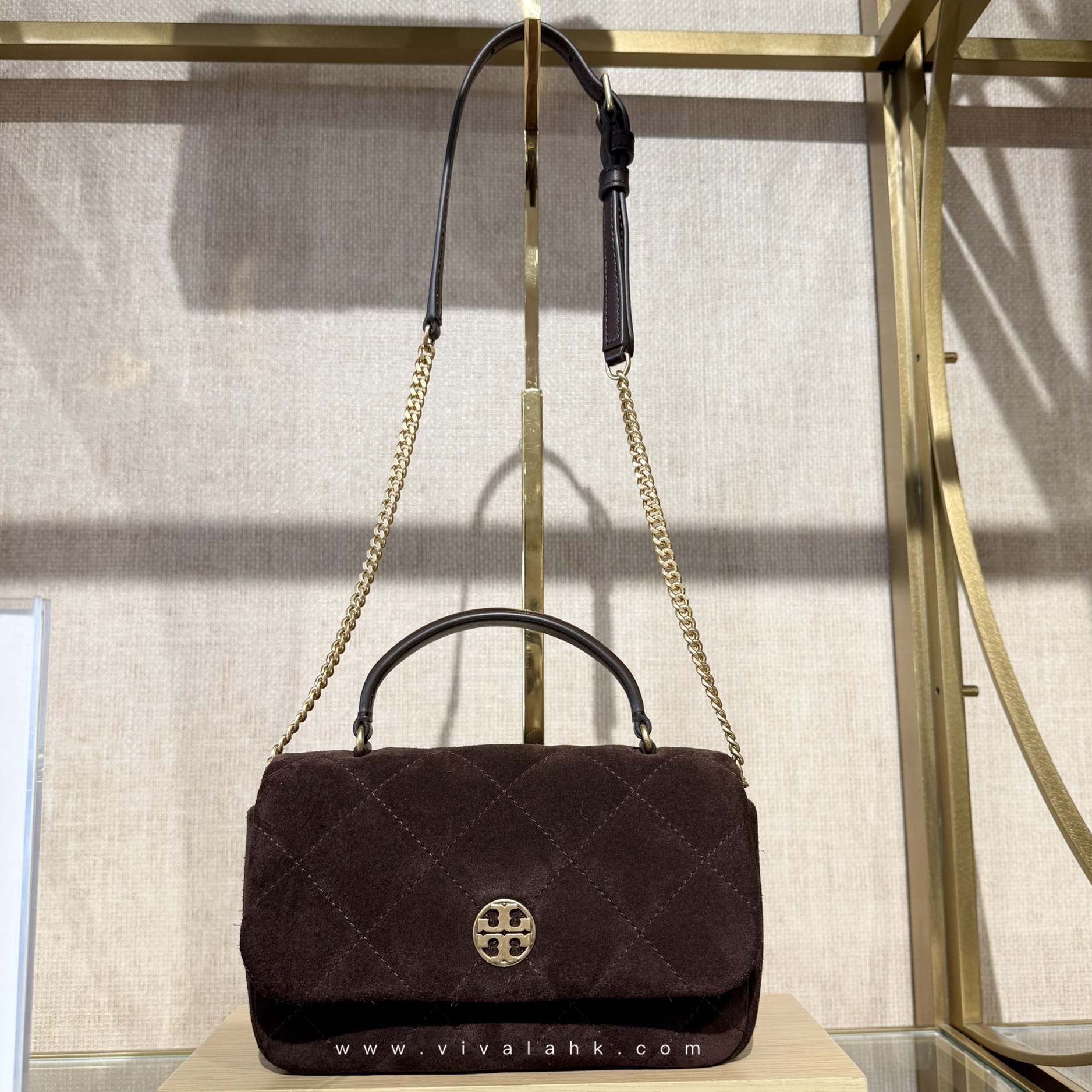 袋面配上 金色 Tory Burch Double-T Logo + 鏈條裝飾,復古味即刻拉滿;深啡色調百搭又耐睇,無論秋冬穿搭定係日常返工都好加分 🍂✨